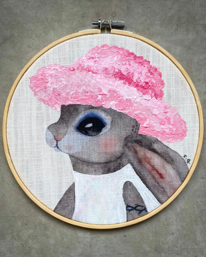 Unikt konstverk med handmålade detaljer på tryckt linneblandat canvas-tyg,