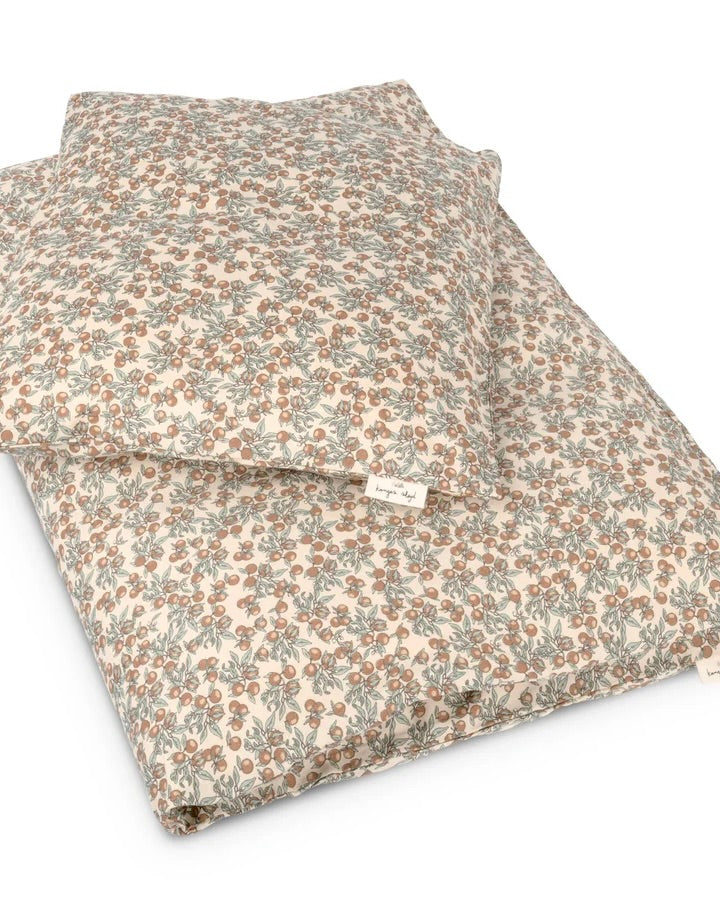 Få söta drömmar i det här ljuvliga bäddsetet som heter ”Orangery beige” med örngott och matchande påslakan, tillverkat i 100% ekologisk bomull. Alla bäddset är packade i en matchade tygpåse som kan användas som förvaringspåse.