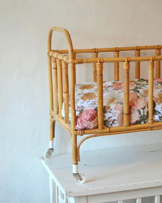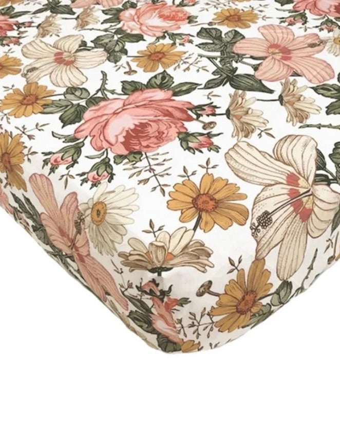 Ett vävt bomullslakan i sött trädgårdsblommigt tryck med vintagevibbar.