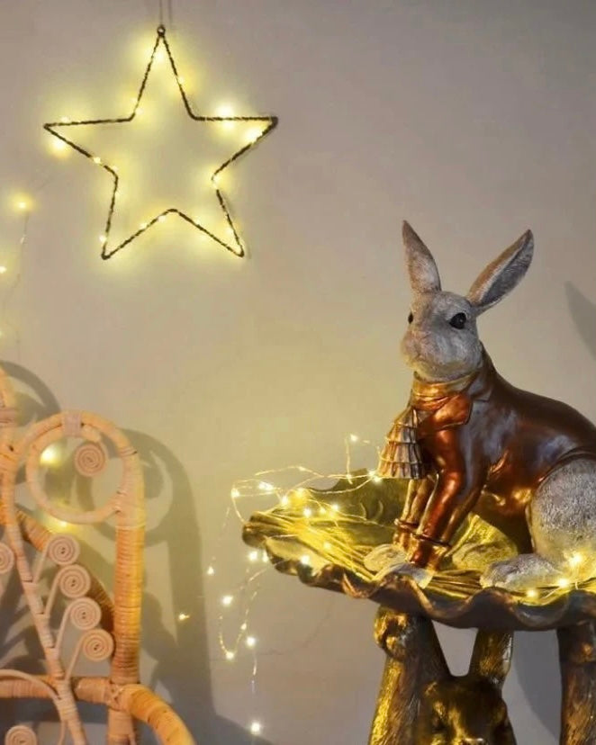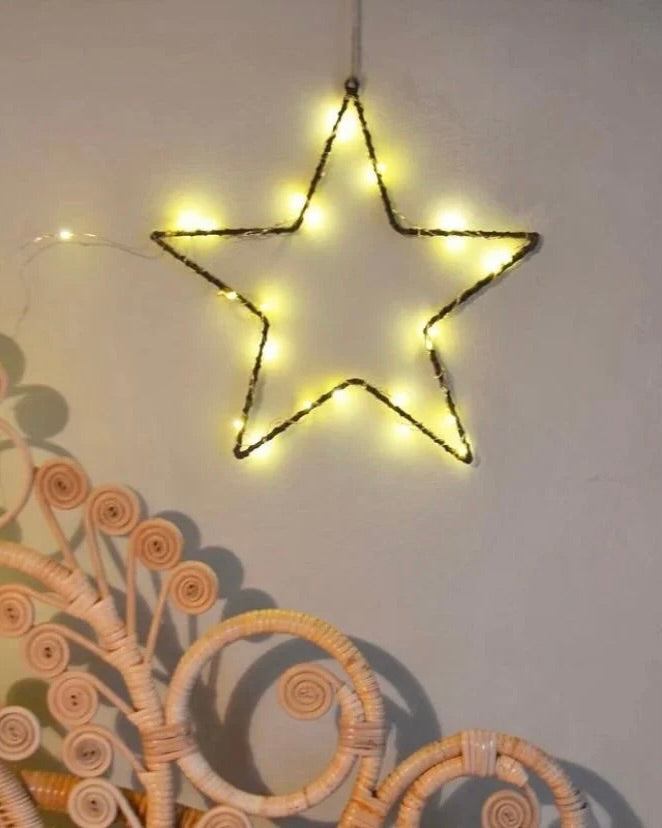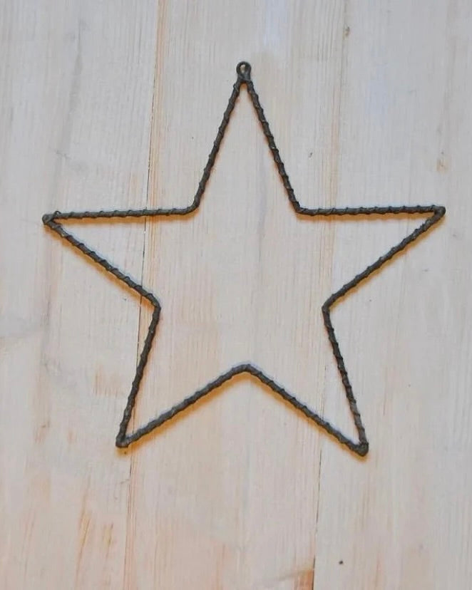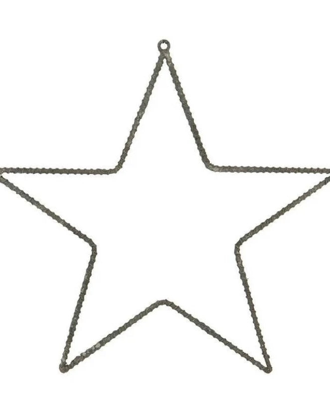 Metallstjärna, att användas som den är eller som ram för pyssel. Man kan till exempel vira ett vackert band runt den eller vira in den i en lampslinga och sen hänga i ett fönster eller mot en vägg.