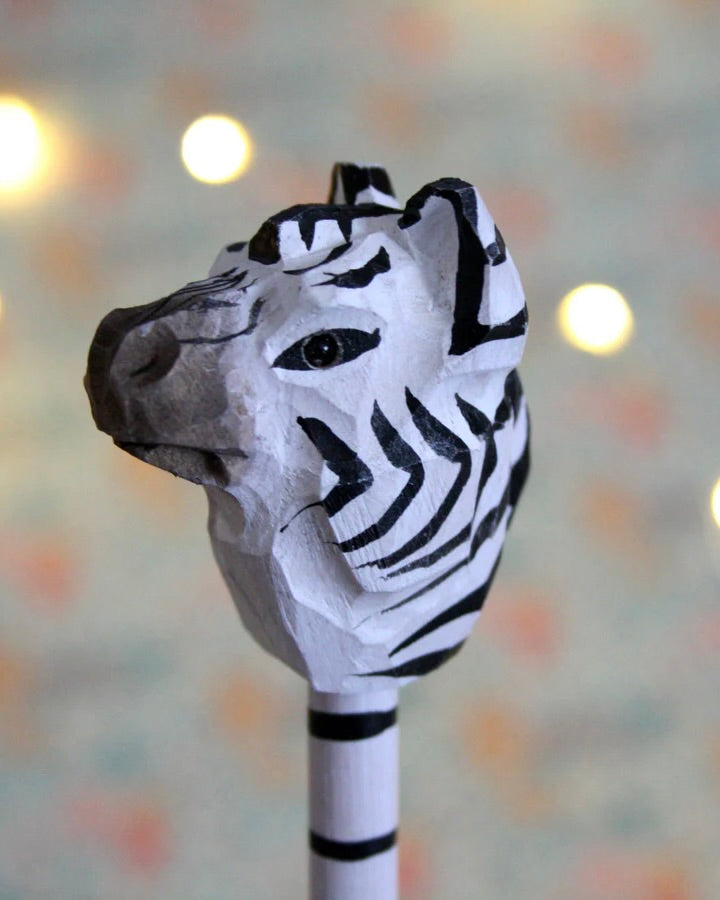 Ljuvliga pennor, gjorda av snidat lind-trä (bass Wood) och målade i vilda djurs färger. En rolig liten present att ha, perfekt för barn som börjar skolan och små blivande konstnärer.