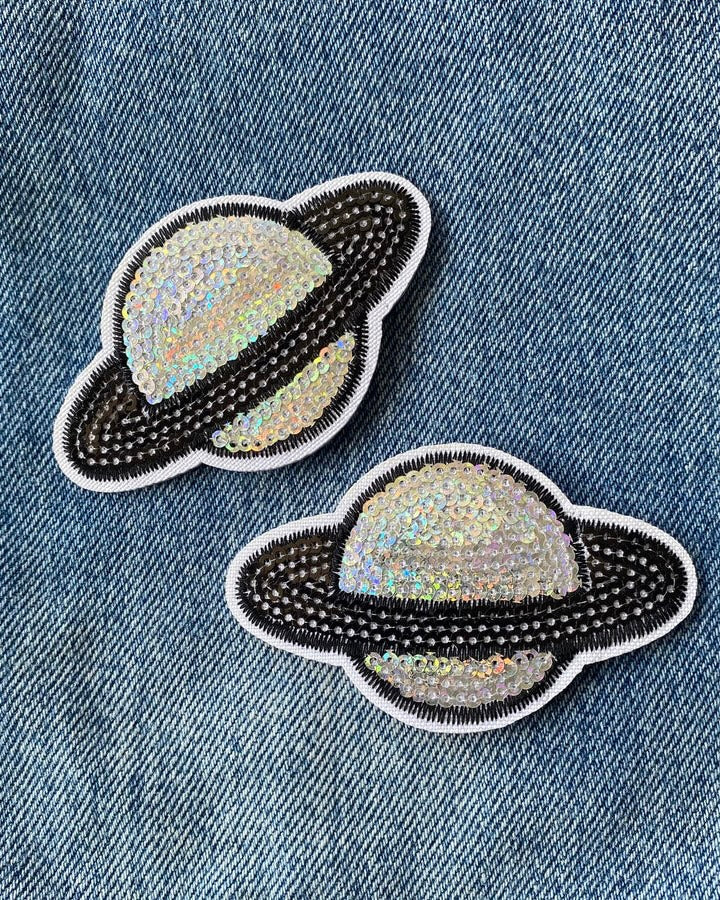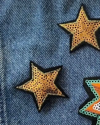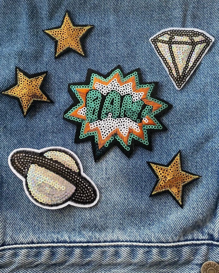 "Iron-on", stryk på-lappar i form av en diamant, stjärnor, planet och ”bam”. Köp en och en eller hela setet.