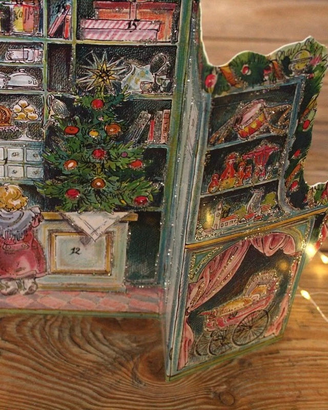 Vacker utvikbar 3D-Adventskalender med glitter, i vintage stil.