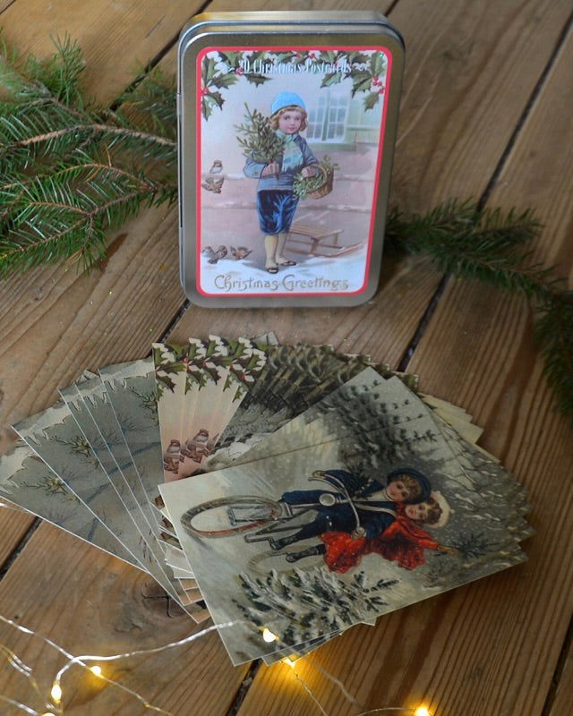 Box med med 20 vackra vintage vykort; 4 olika utföranden.
