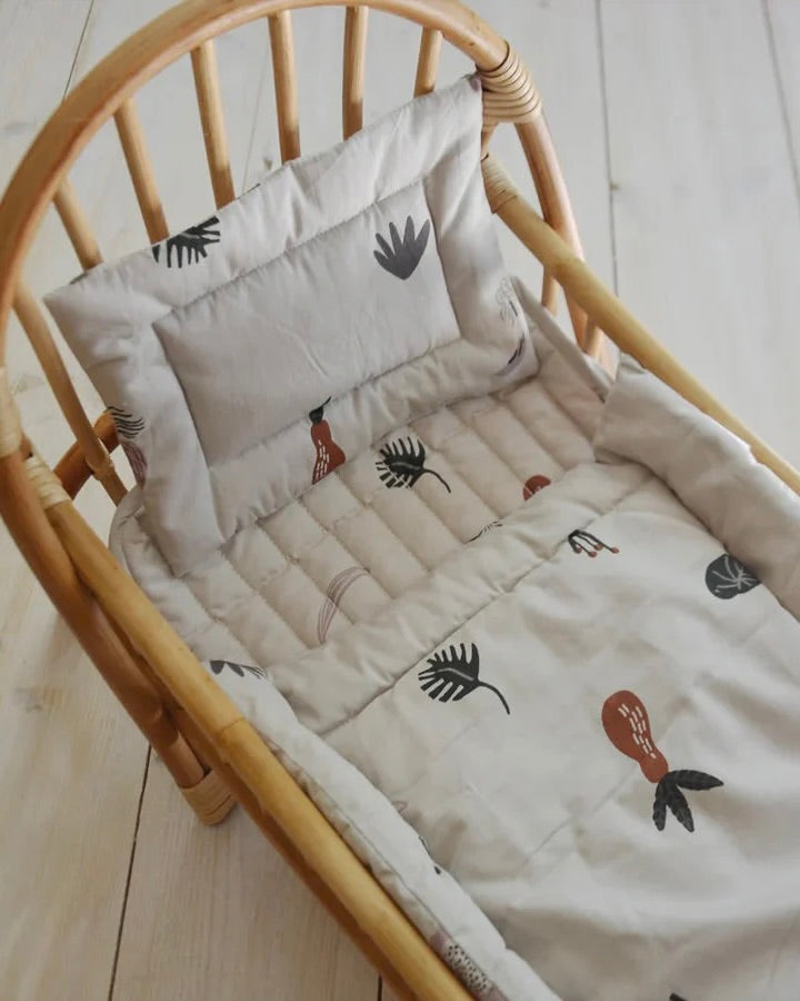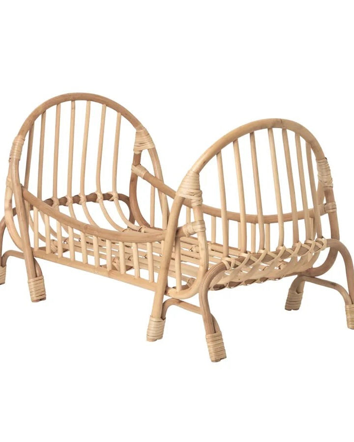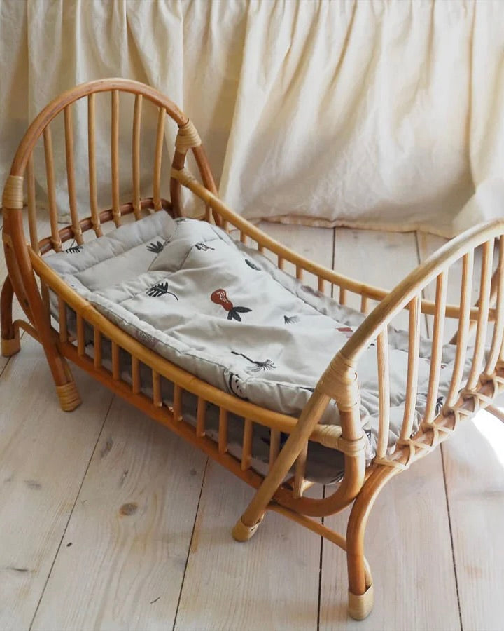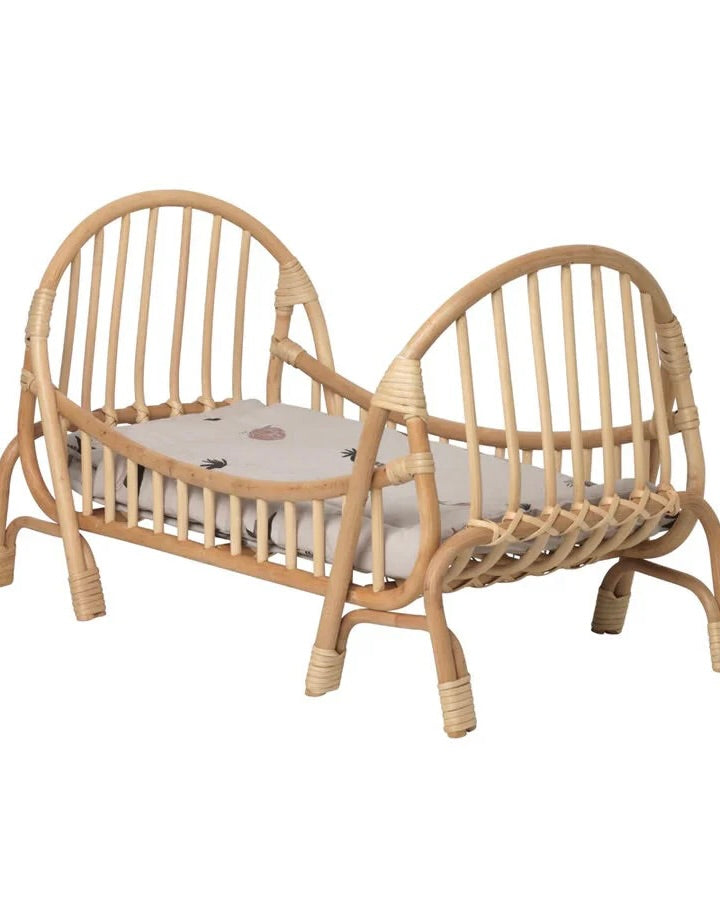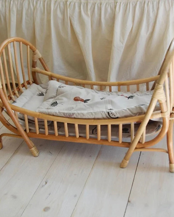 Kuku Doll Bed, flätad i naturlig bambu och rotting, är en söt och stilfull säng för dockor och nallar. Kombinera den med det matchande quiltade Fruticana-bäddsetet av ekologisk bomull och ge dina favoritlekkamrater en kunglig behandling!