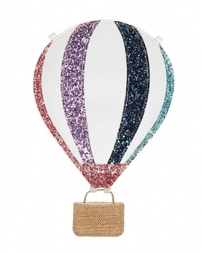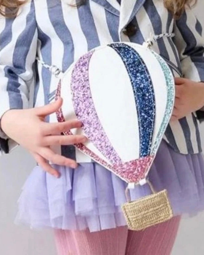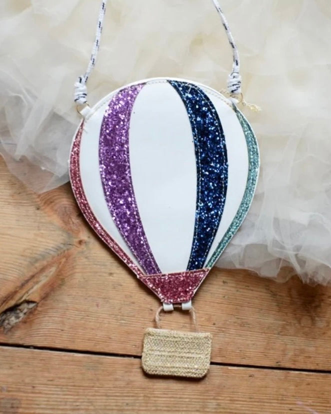 Söt liten väska i form av en luftballong. Fantastiskt glittrande accessoar som har ett långt coolt axelband och stängs med blixtlås.