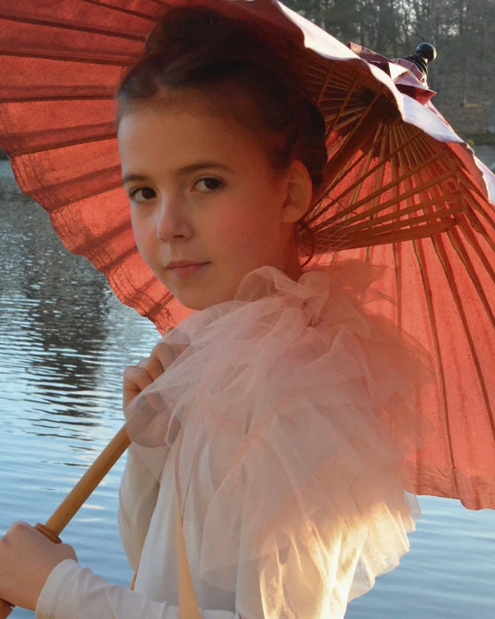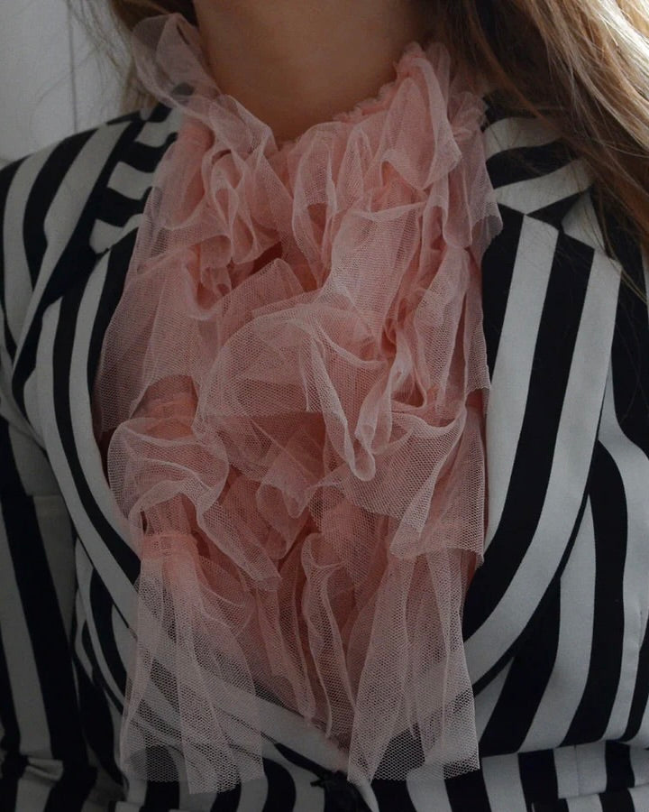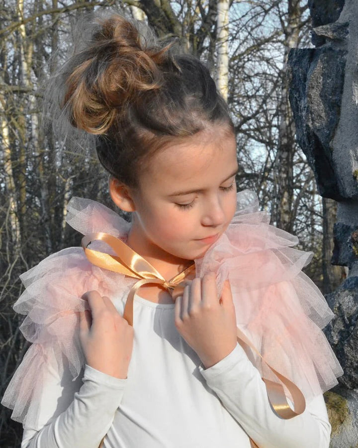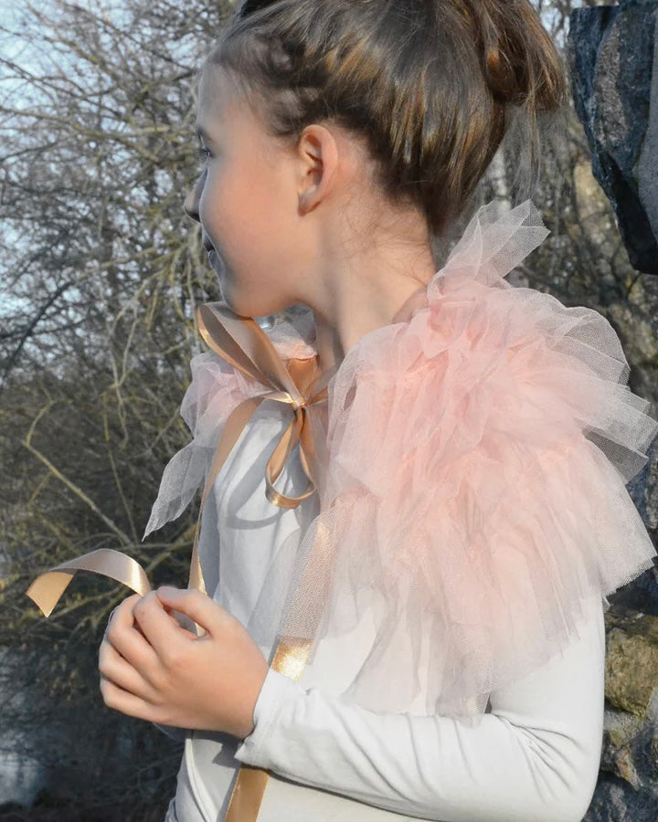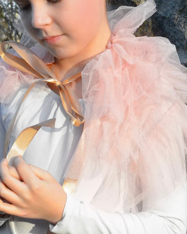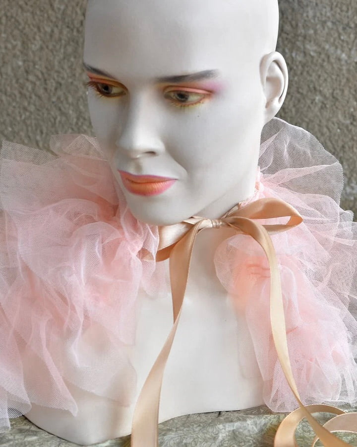Handgjord krage i vintagestil gjord av volangspets med långa sidenband.