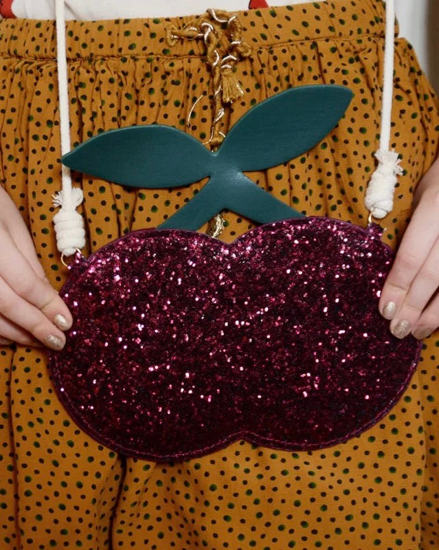 Fantastiskt glittrande accessoar som har ett långt krämfärgat axelband, mjuk filtbaksida och blixtlås.