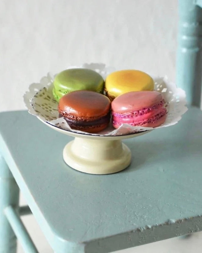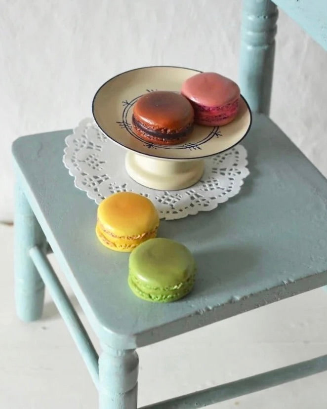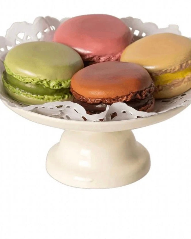 Sötaste fika-setet för en härlig ”fika” med din bästa Maileg vän. Setet kommer med 4 macarons, ett snyggt handmålat tårtställ och små dekorativa pappersservetter som kan användas på tallriken vid servering.