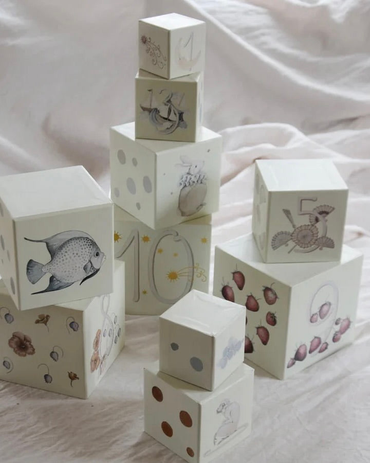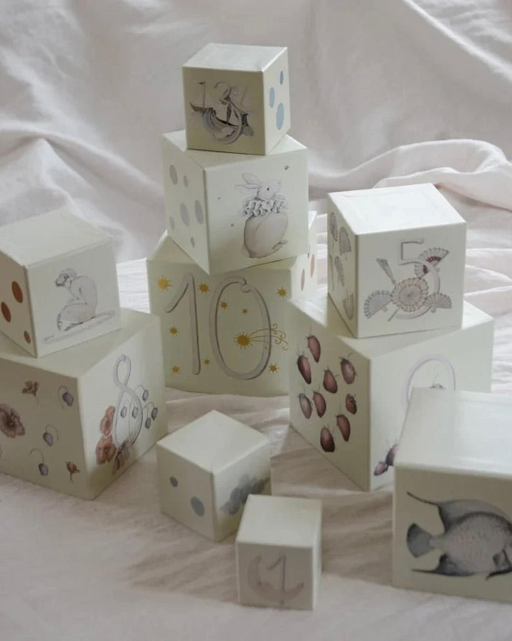 Vackra staplingslådor med nummer från 1-10 som passar perfekt i alla barnrum!