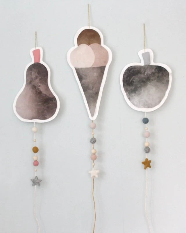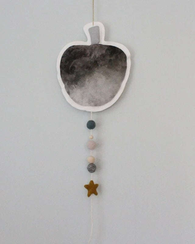 Äppel-mobil, handgjord av linne/bomullstyg med