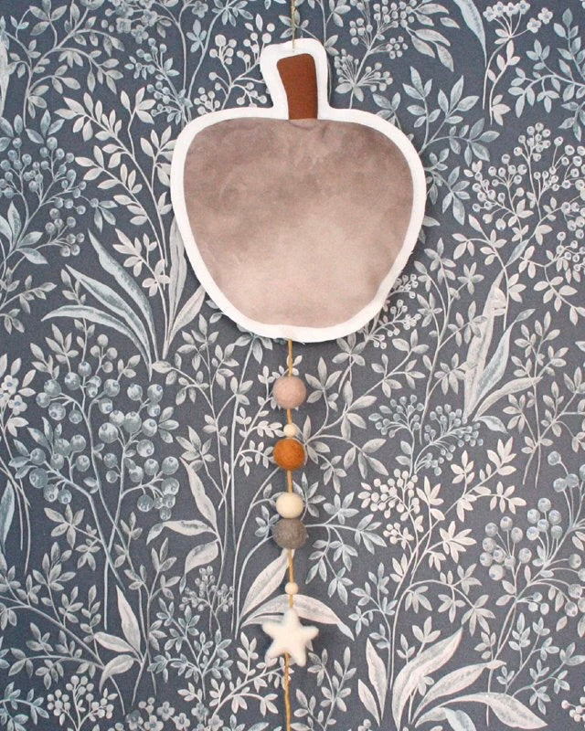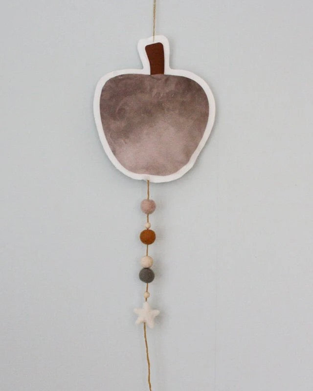 Äppel-mobil, handgjord av linne/bomullstyg med