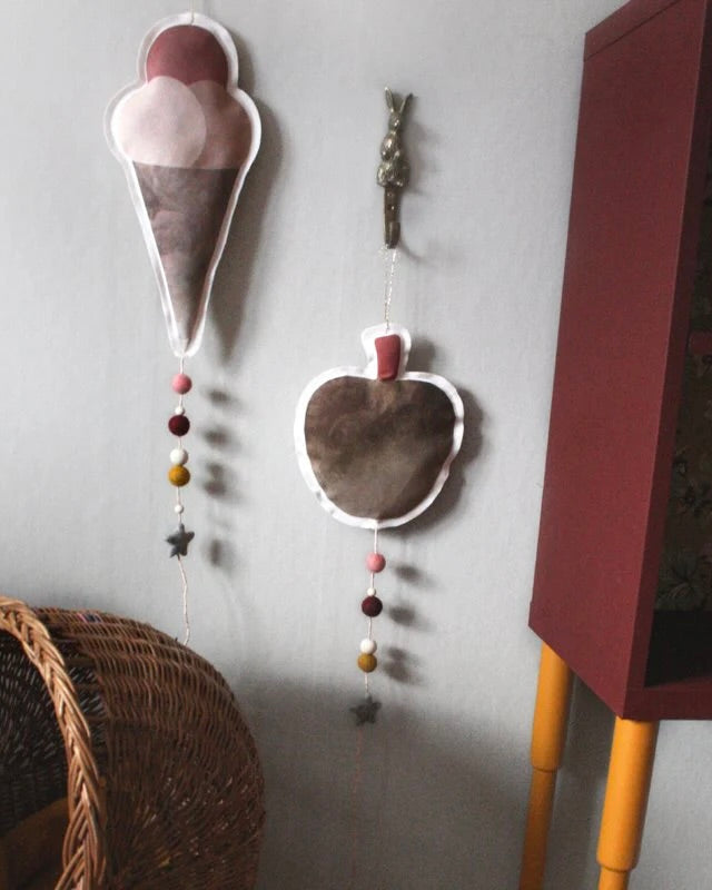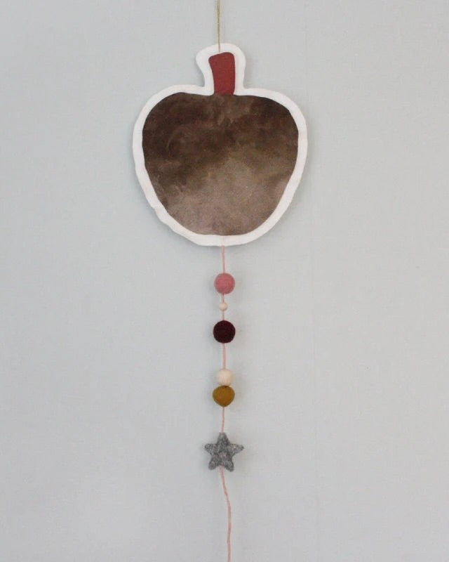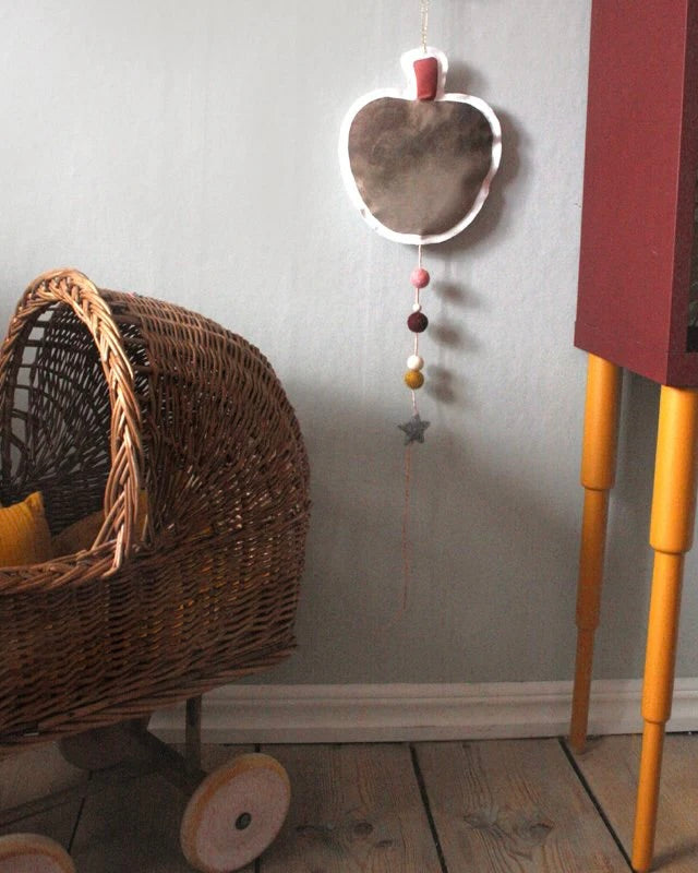 Äppel-mobil, handgjord av linne/bomullstyg med