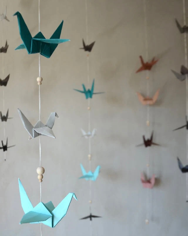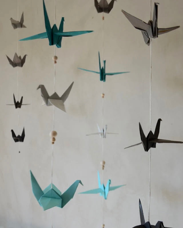 Mobil gjord av origamipapperssvalor. Kommer i tre färgkombinationer.