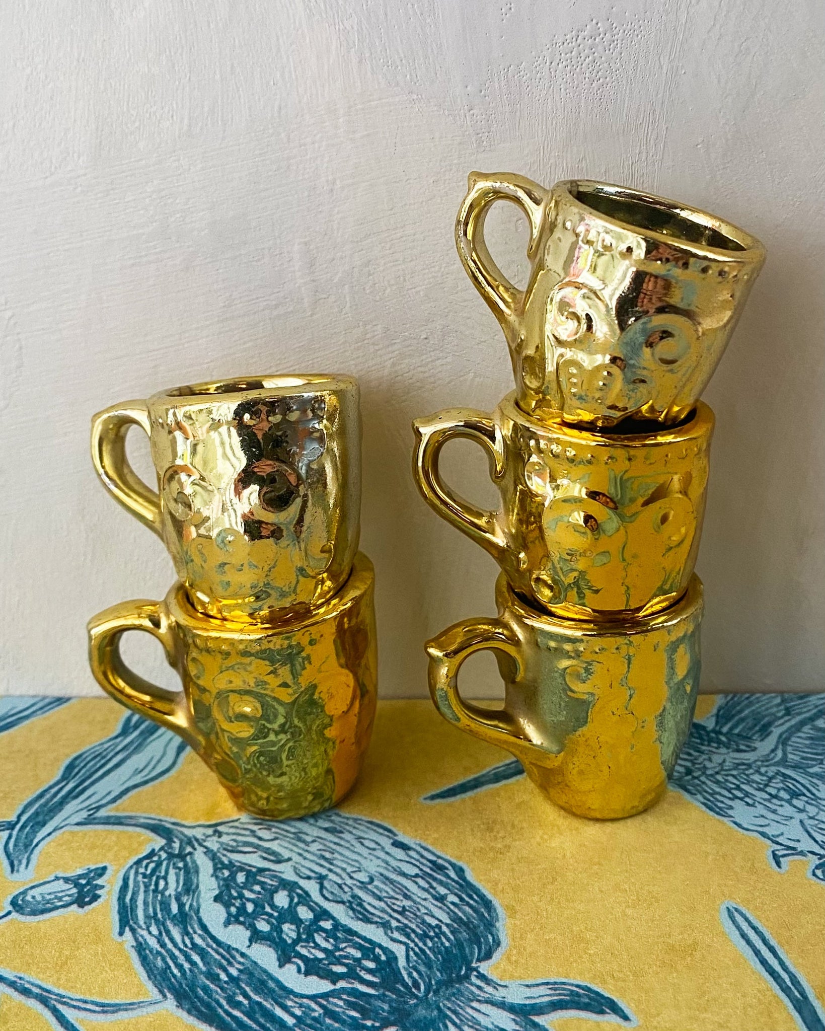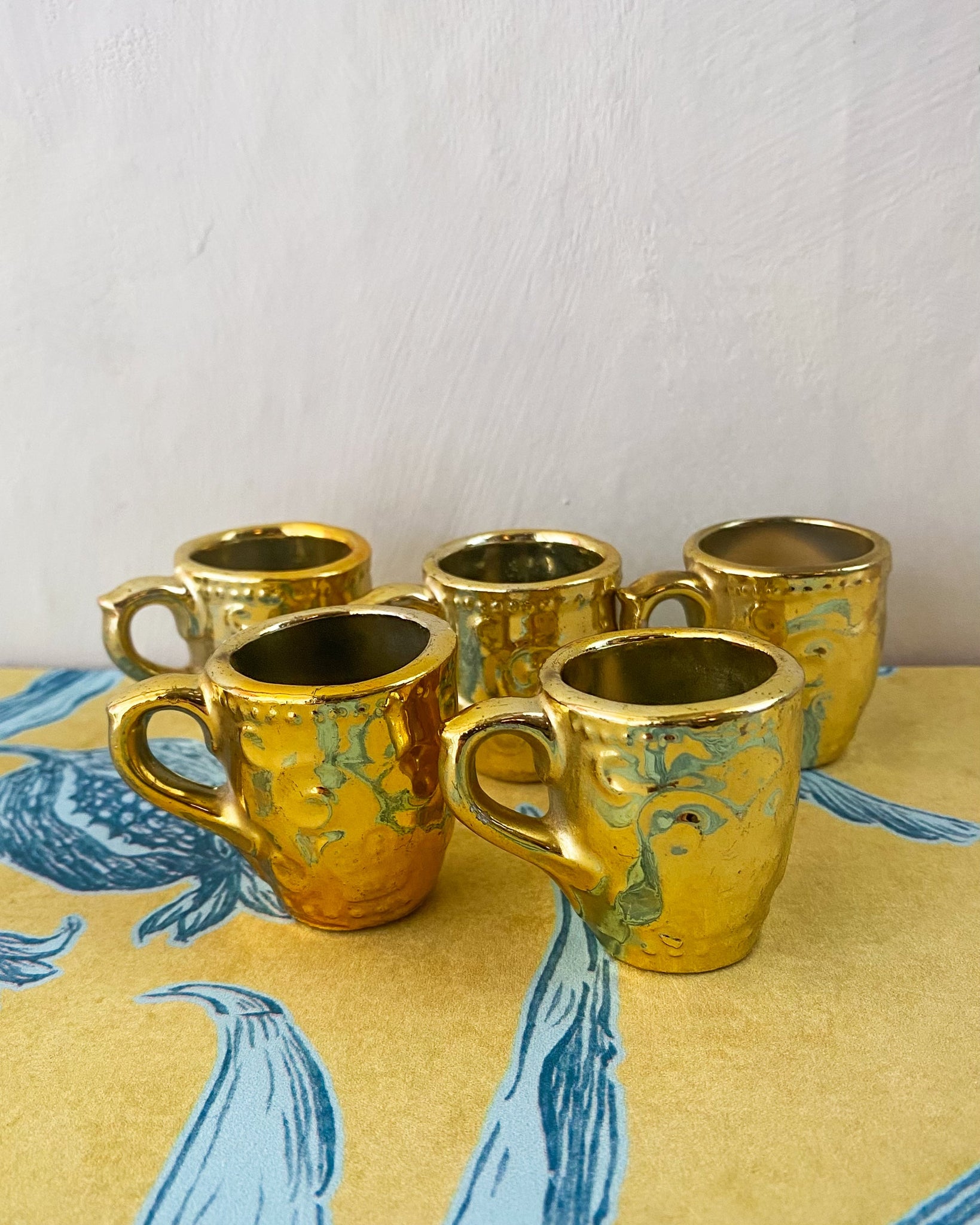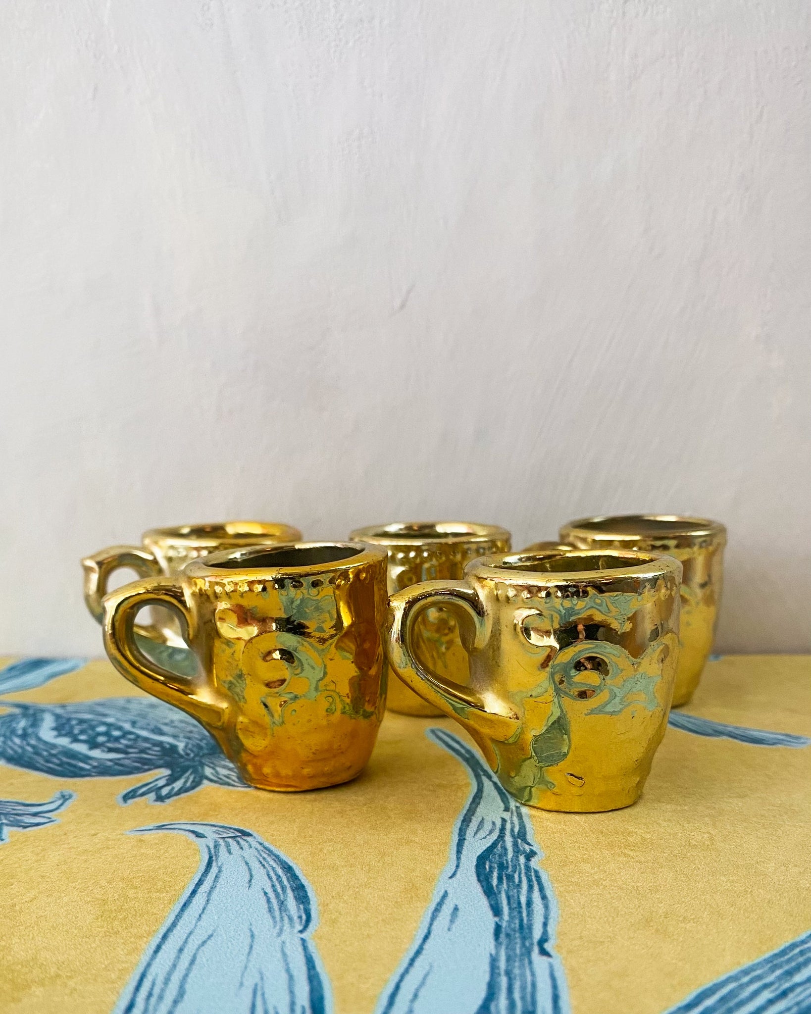 Ljuvligt söta små guldiga koppar, perfekta för en lyckliga fika med små vänner!