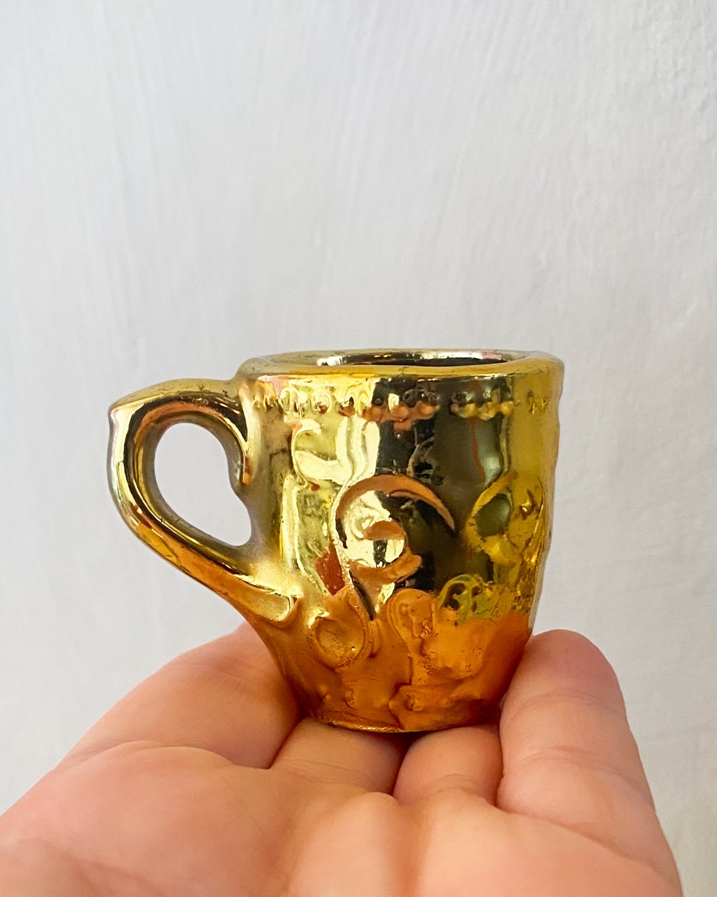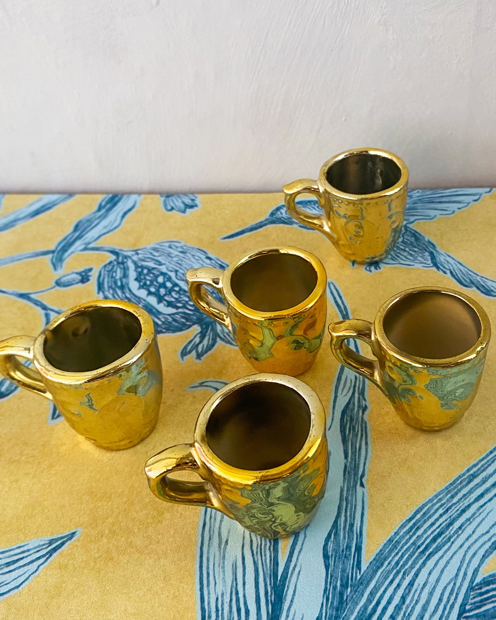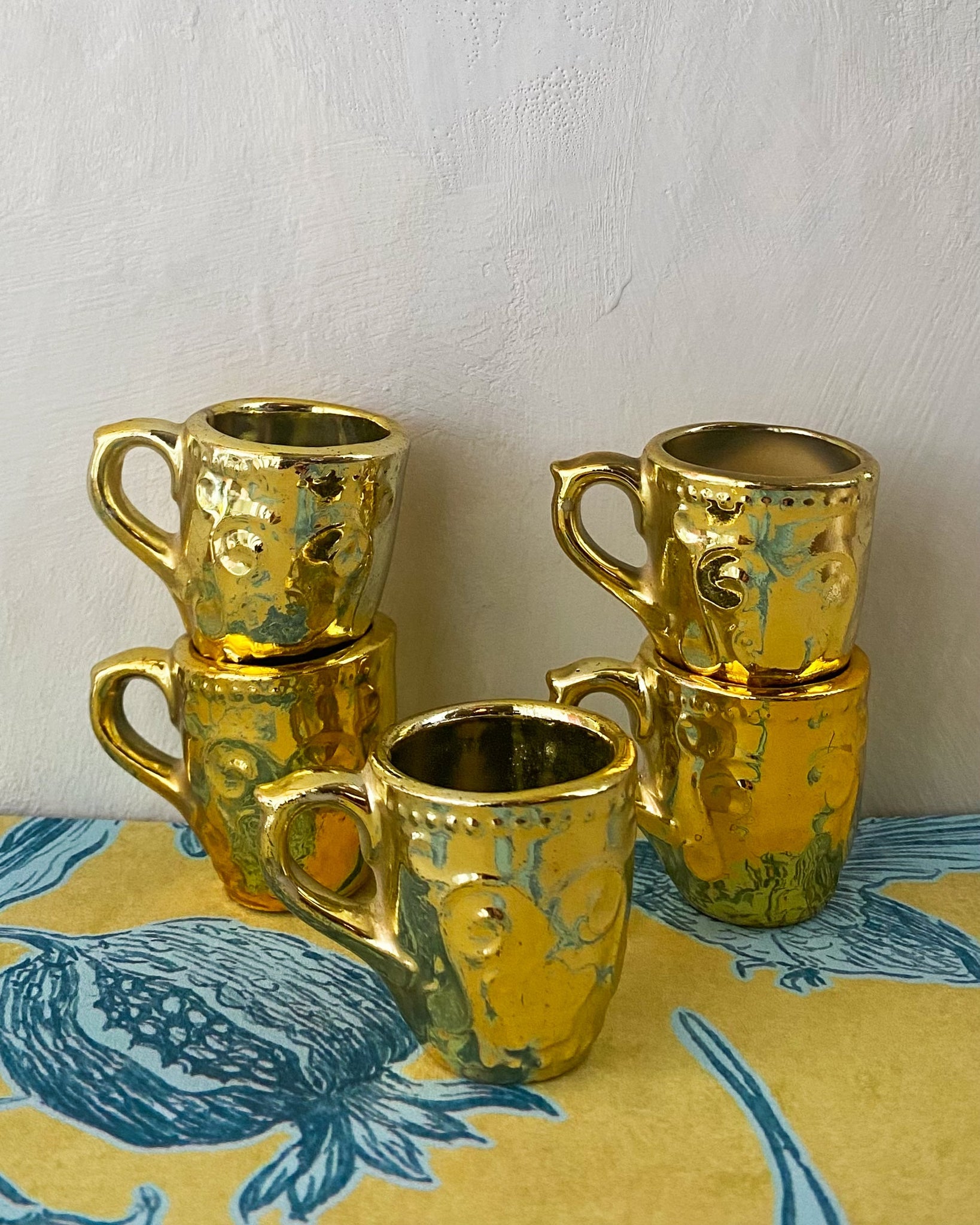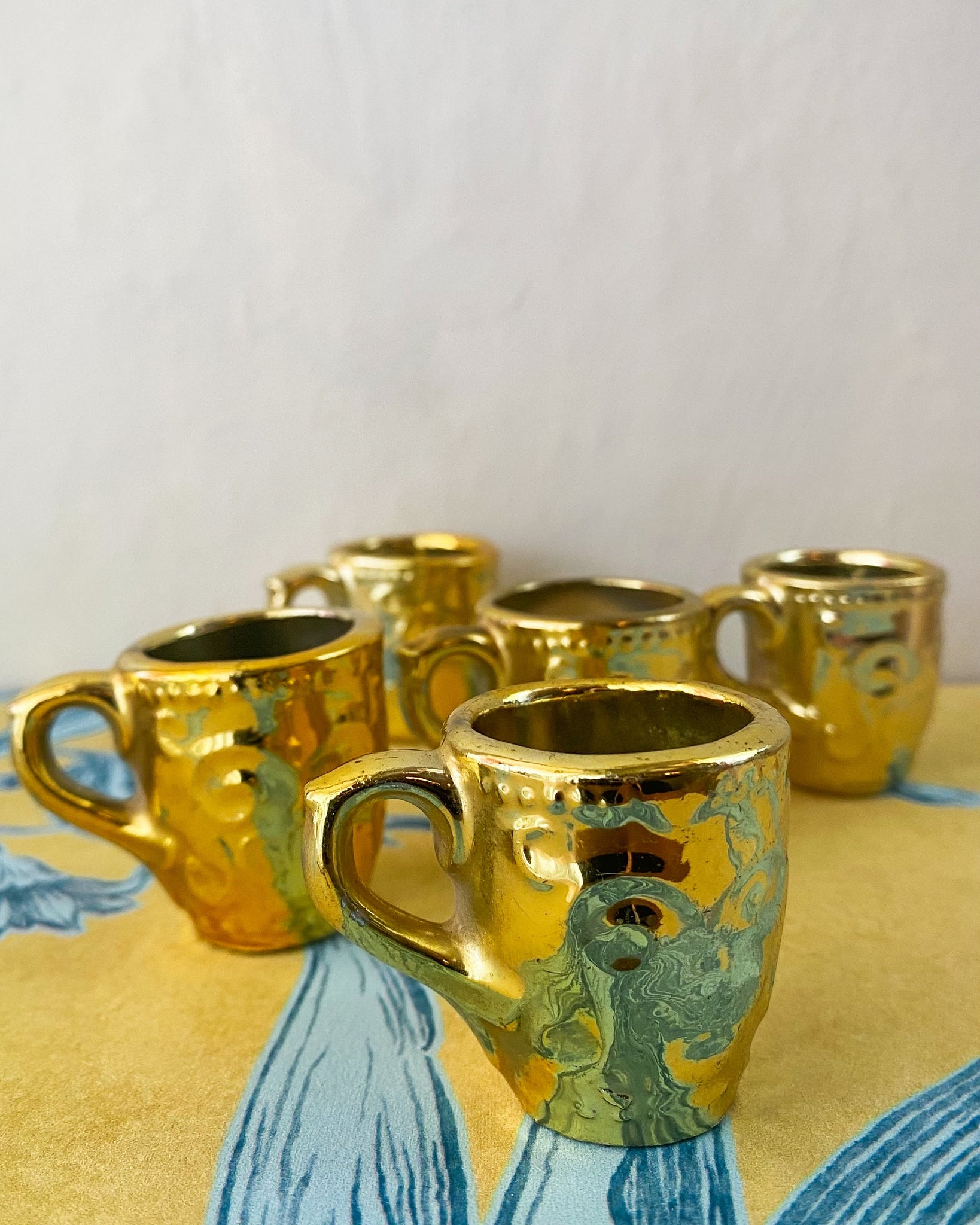 Ljuvligt söta små guldiga koppar, perfekta för en lyckliga fika med små vänner!