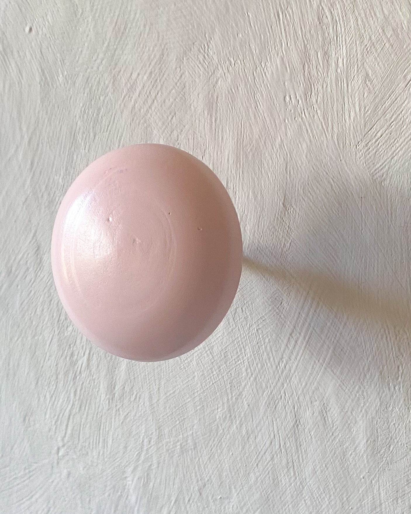 Vägghängare av trä i ljuvligt rosa färg.