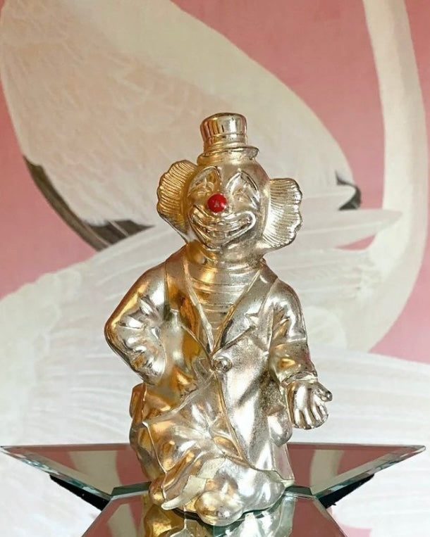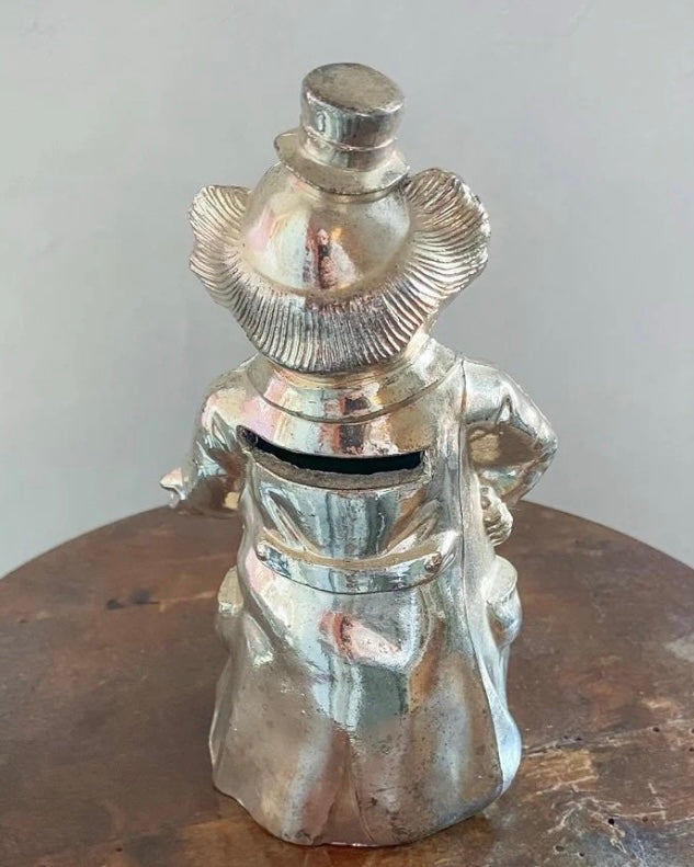 Sparbössa av metall i form av en clown. ”Decapo silver”.