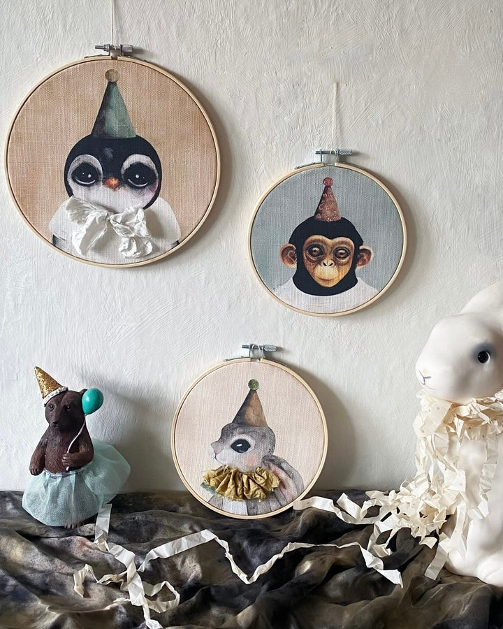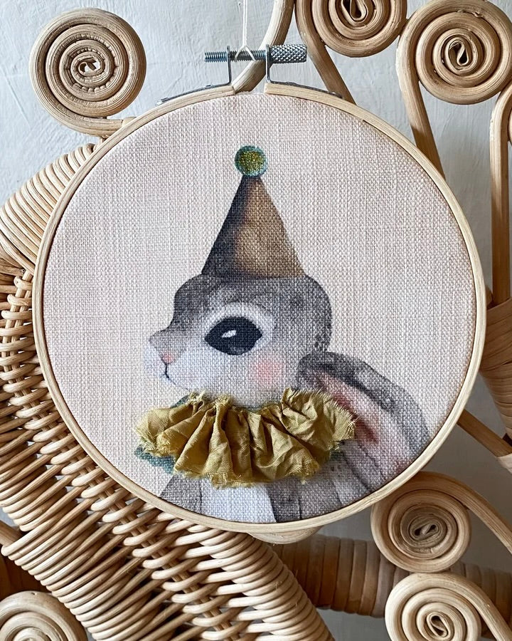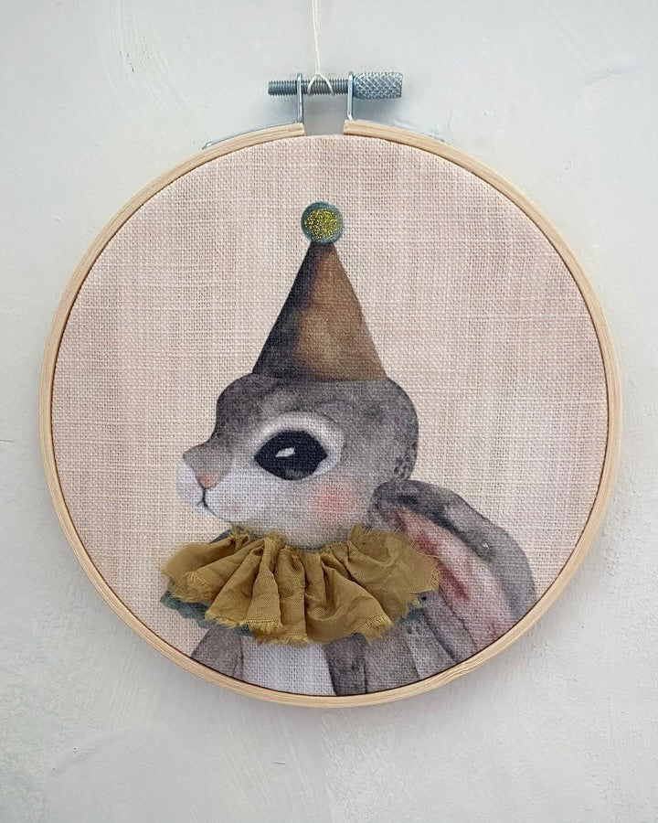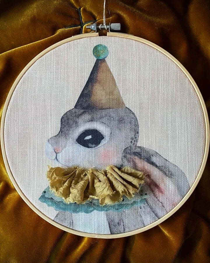 Basil har en krage av acetat-tyg runt halsen och glitter på toppen av sin partyhatt.
