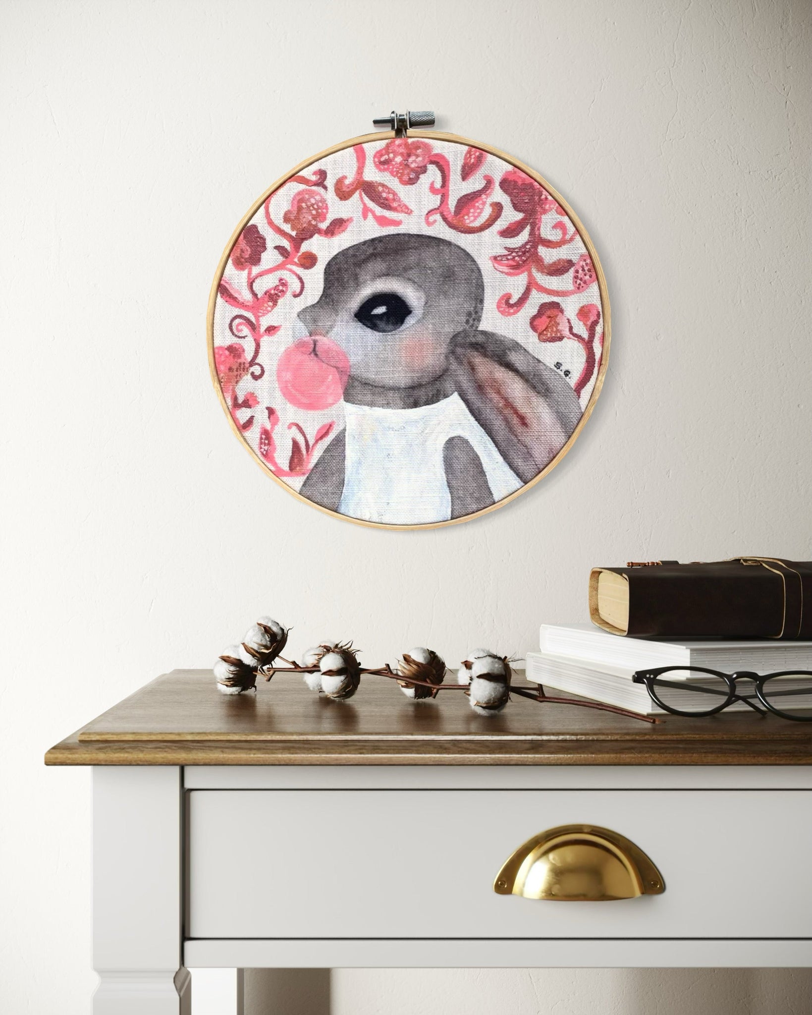 Unique artwork with hand-painted details on printed linen-blend canvas fabric,