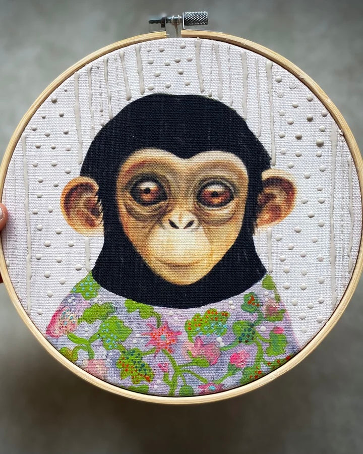 Unique artwork with hand painted details on printed linen mixed canvas fabric,