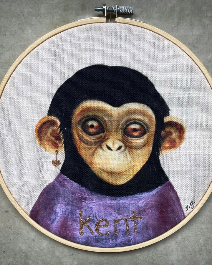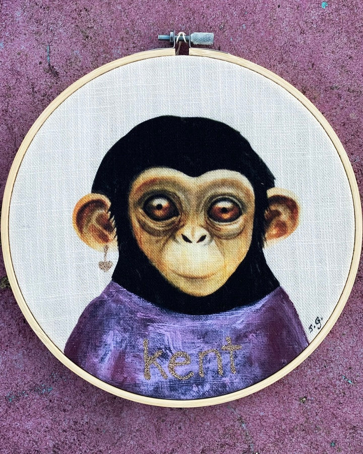 Unique artwork with hand painted details on printed linen mixed canvas fabric,
