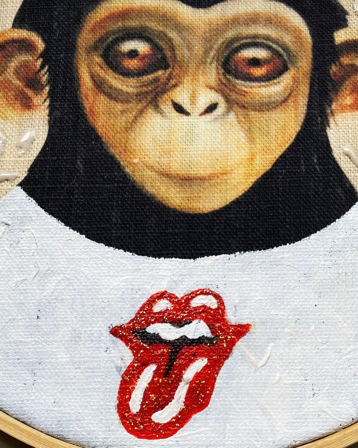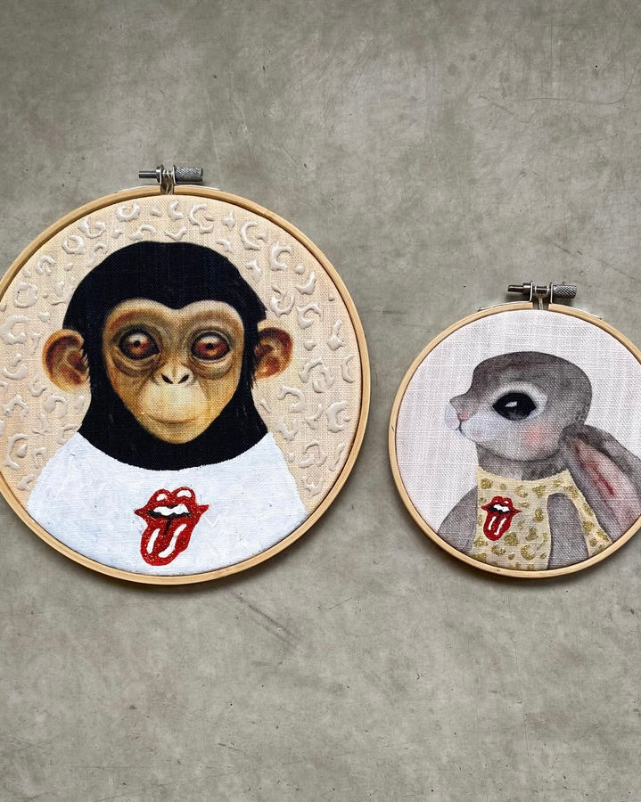 Unique artwork with hand painted details on printed linen mixed canvas fabric,