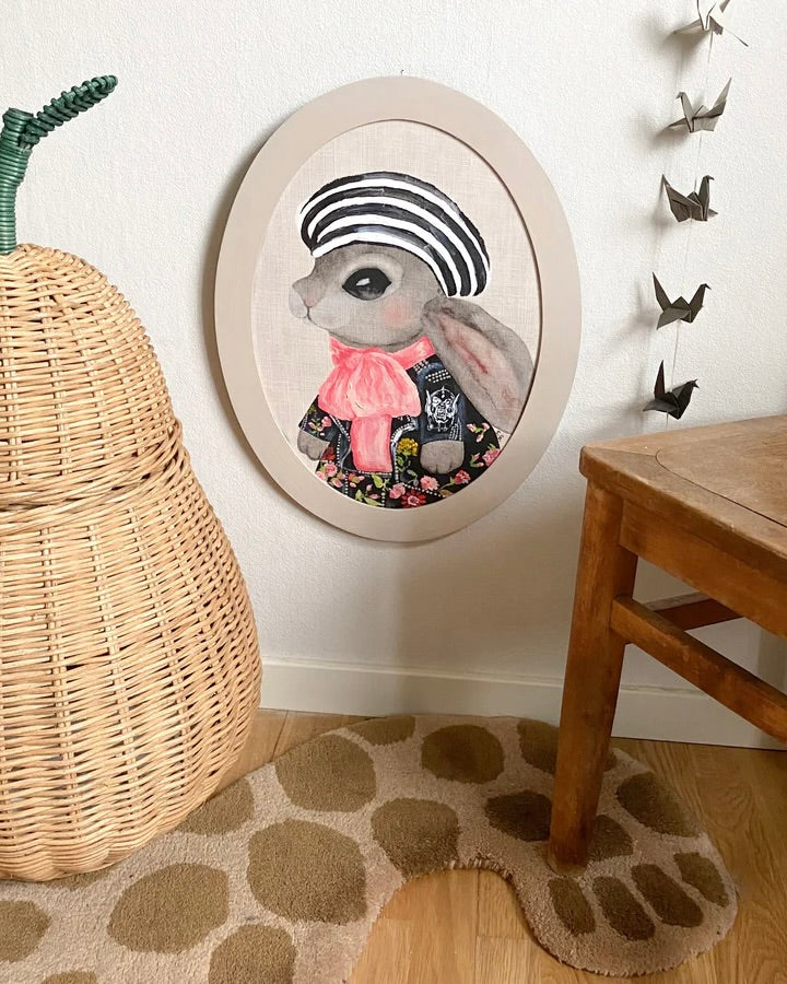 Unique artwork with hand painted details on printed linen mixed canvas fabric,