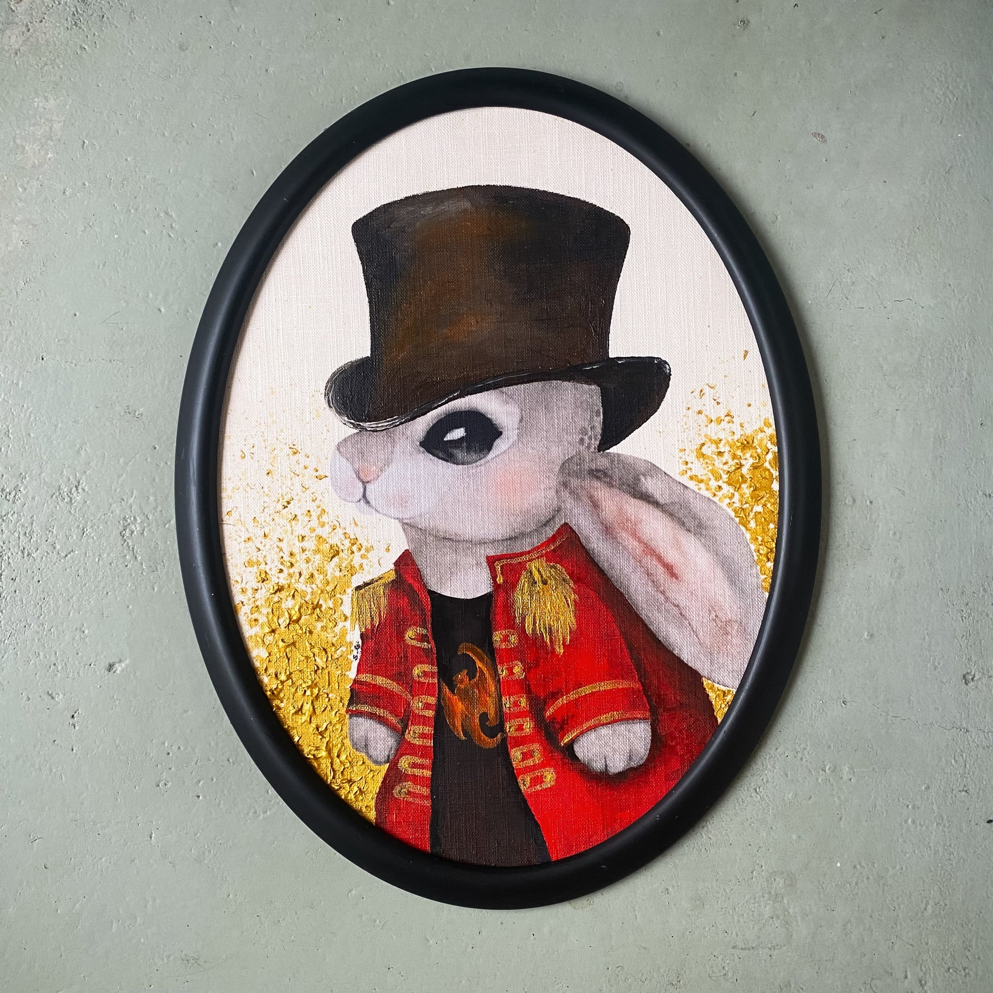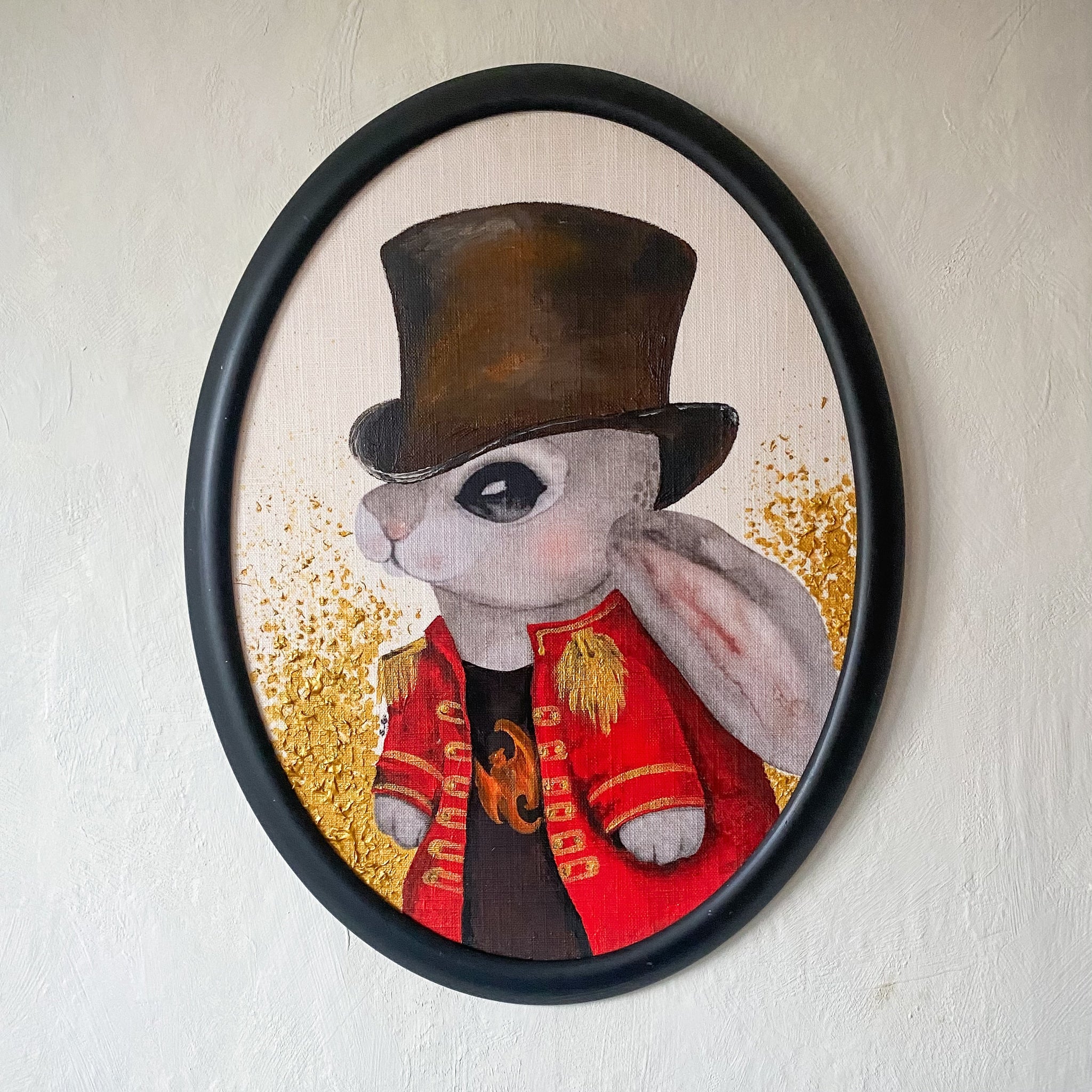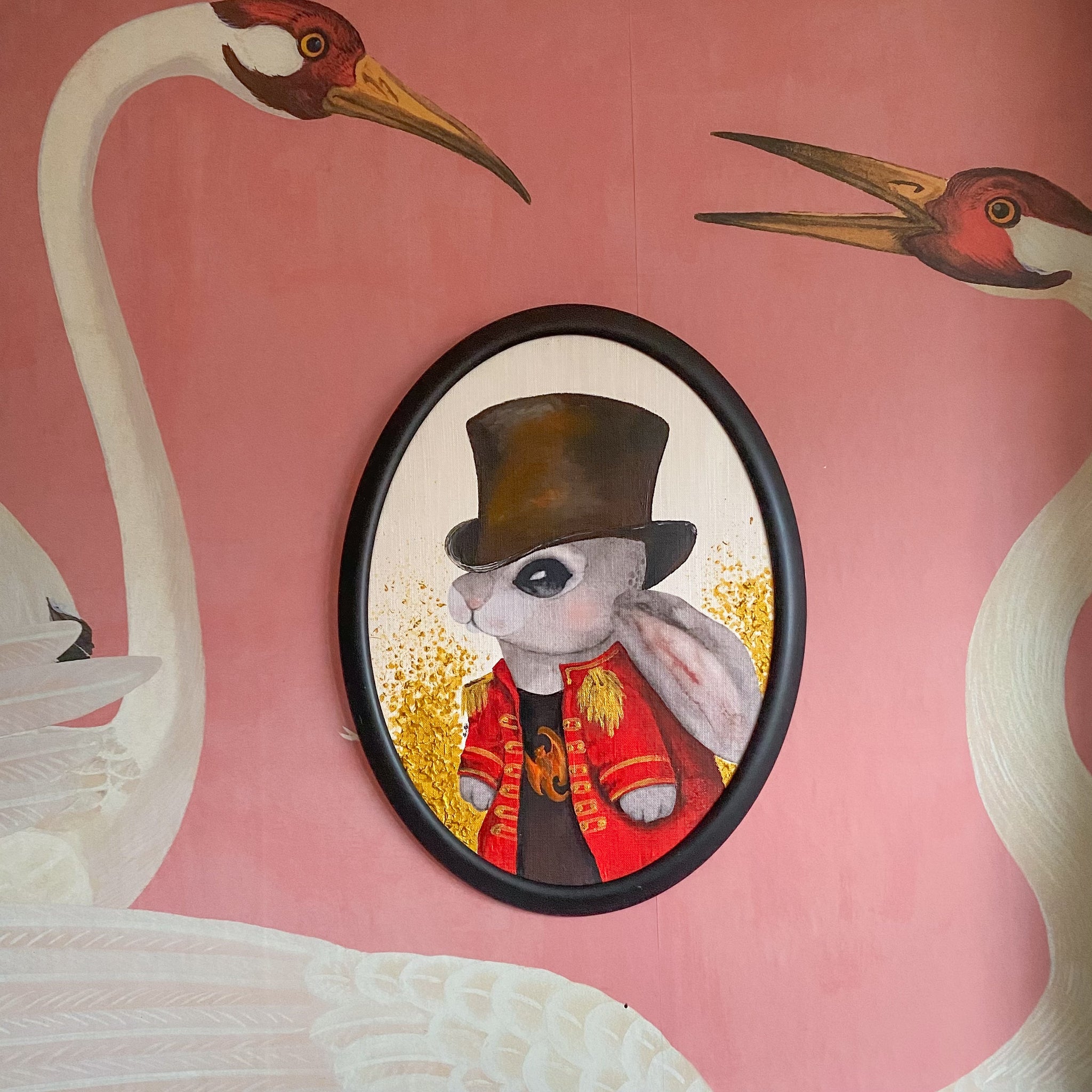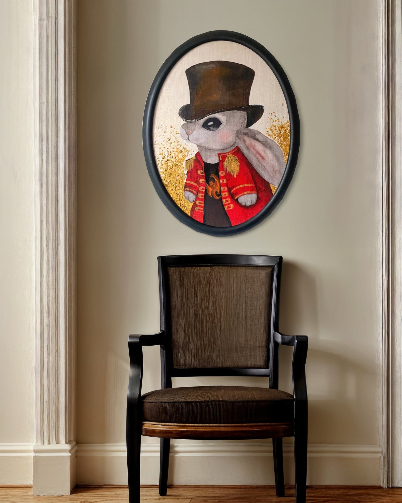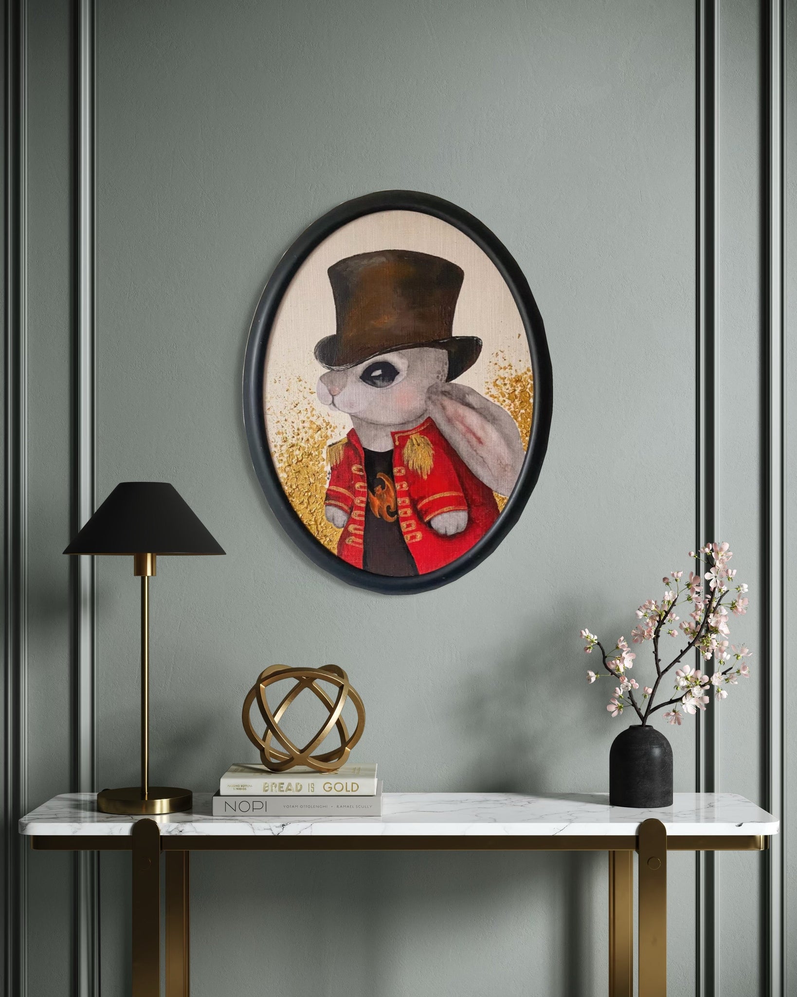 Unique artwork with hand-painted details on printed linen blend canvas fabric,
