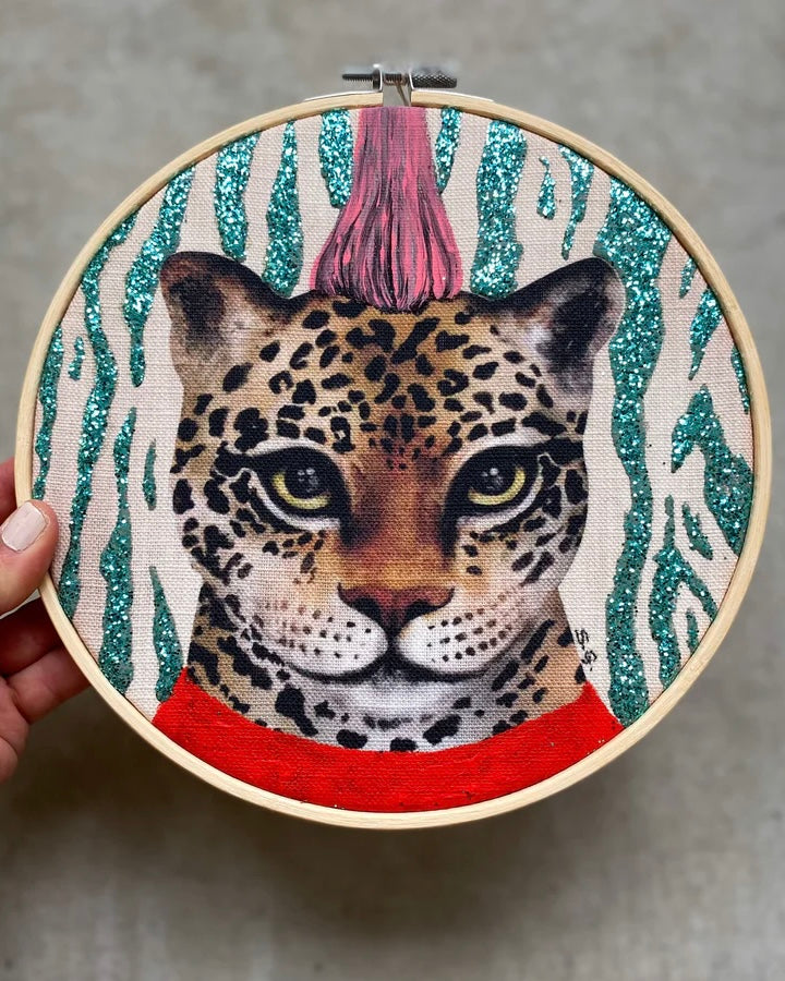 Unique artwork with hand painted details on printed linen mixed canvas fabric,