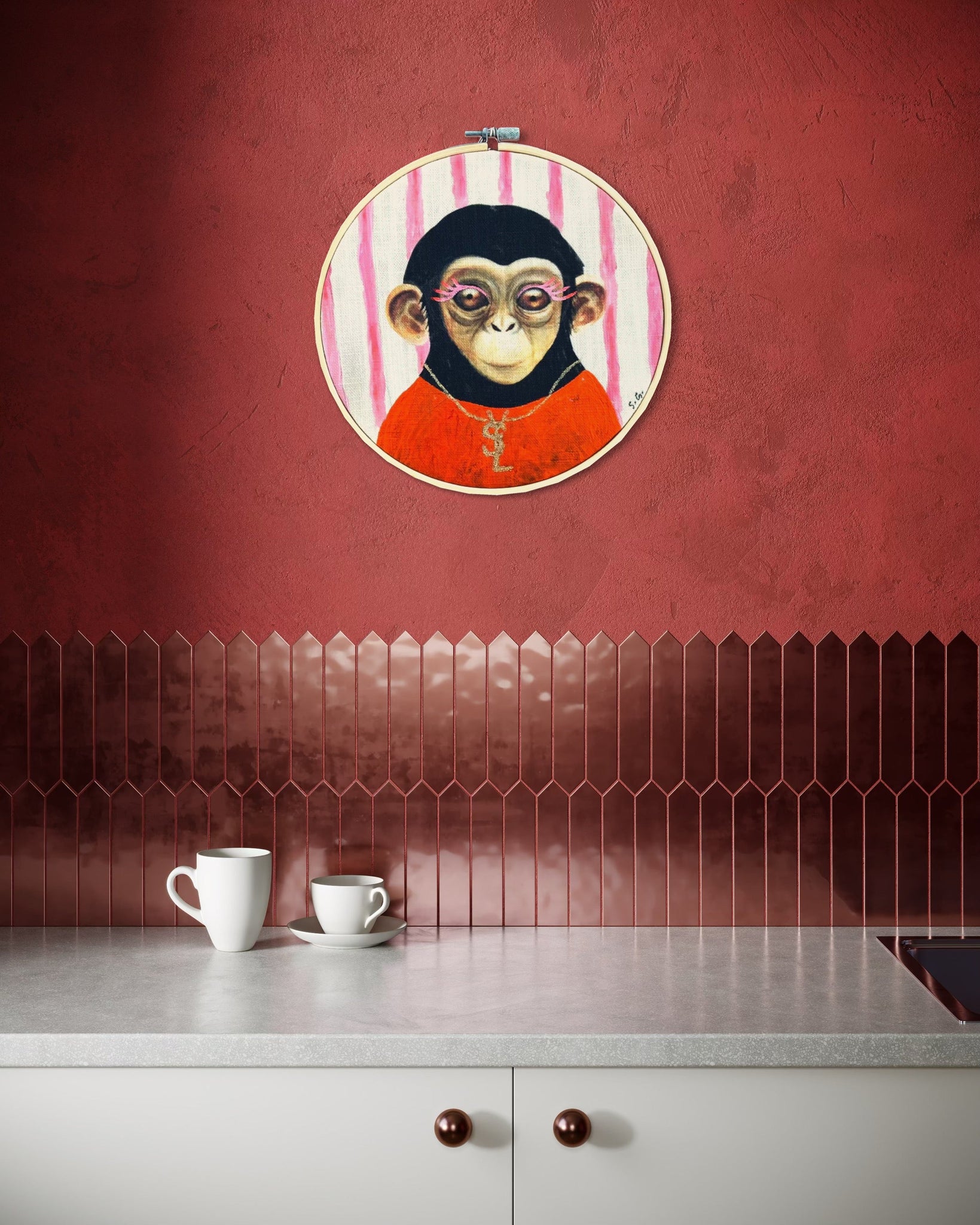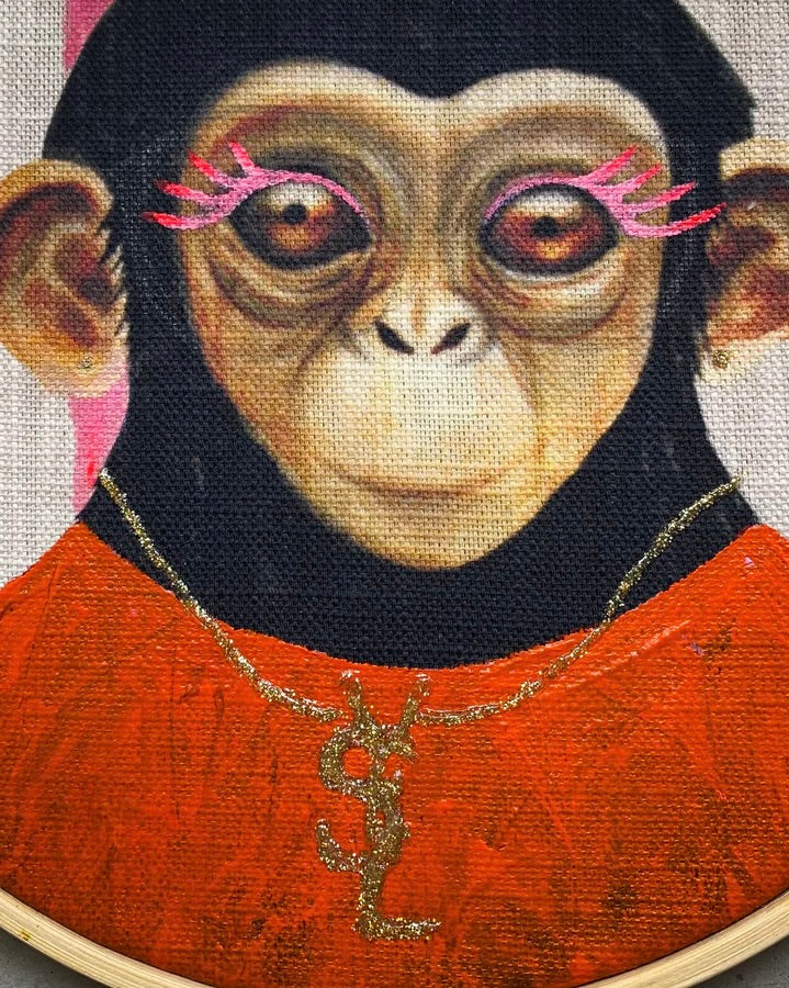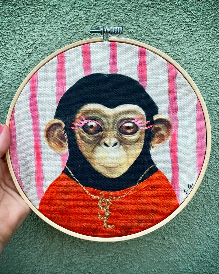 Unique artwork with hand-painted details on printed linen blend canvas fabric,