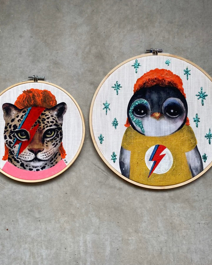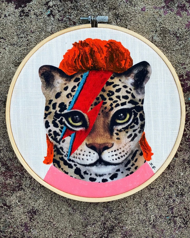 Unique artwork with hand-painted details on printed linen blend canvas fabric,