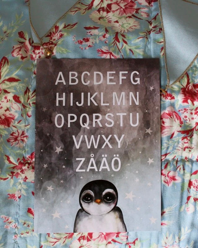 Poster with the Swedish alphabet. Printed on semi-glossy paper.