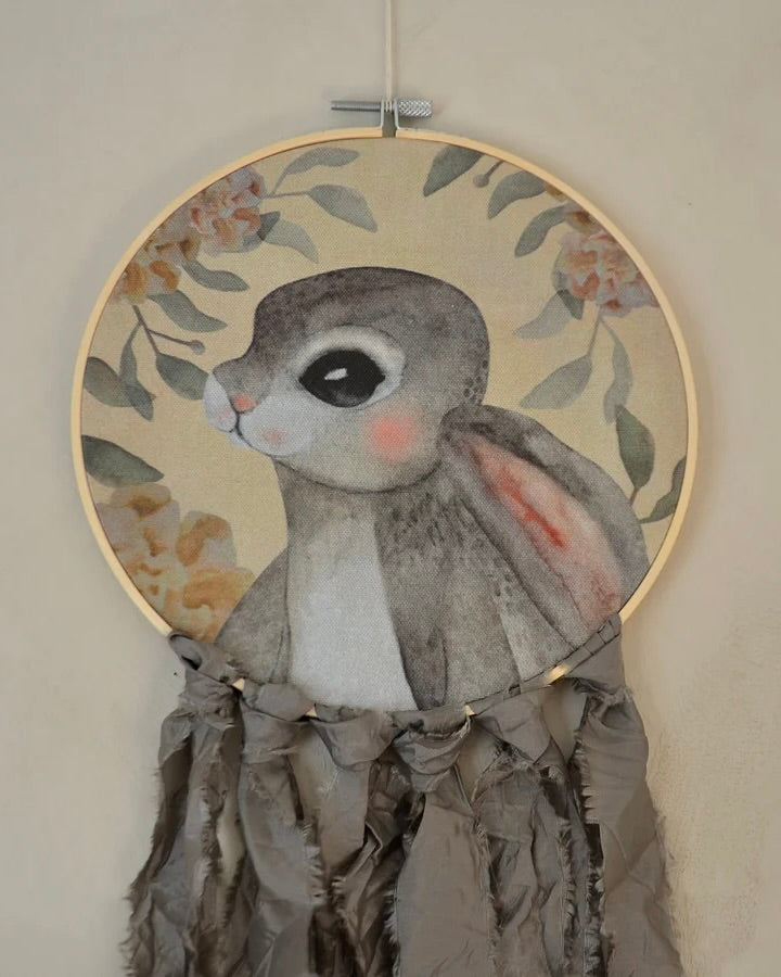 Wall hoop, Bunny portrait - Grey