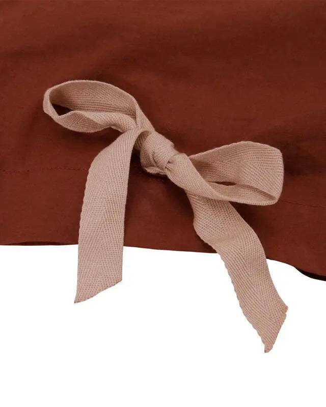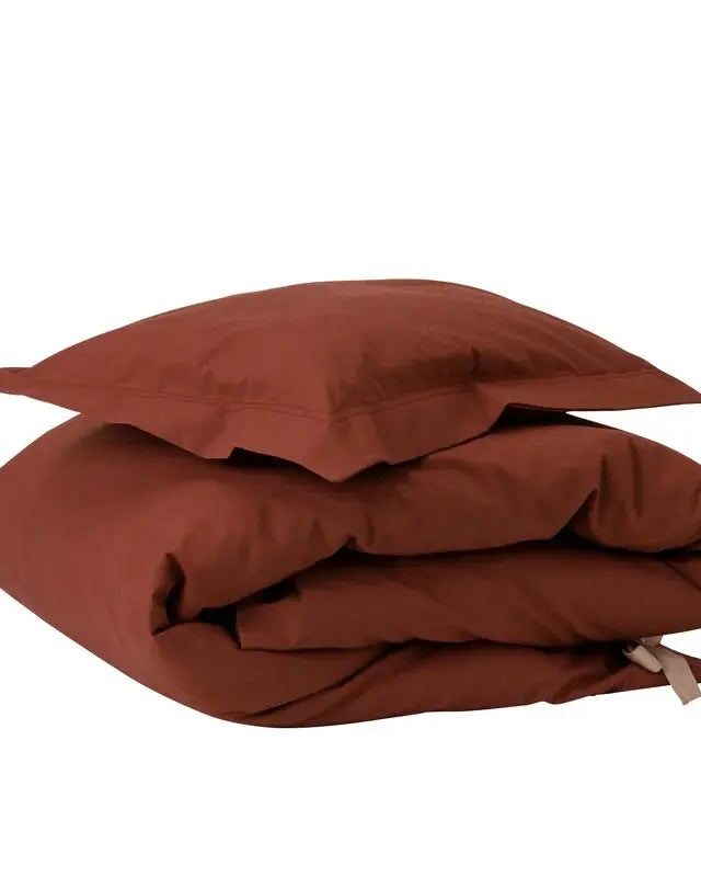 The bedding set is made of 200 tcn 100% cotton percale and for closure, there are herringbone ties that are about 30 cm long.