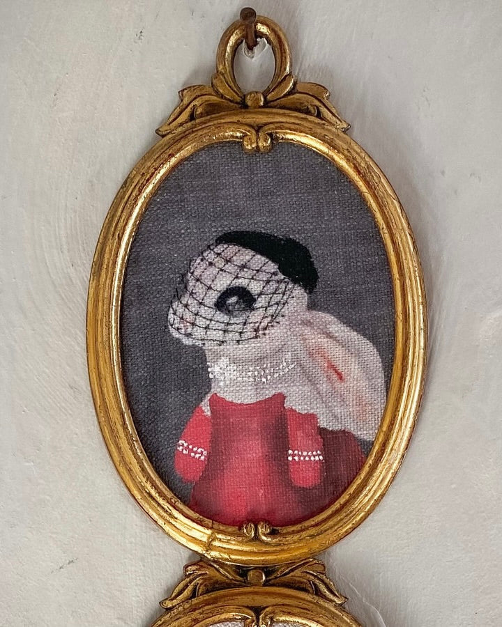 Unique artwork with hand-painted details on printed linen blend canvas fabric,