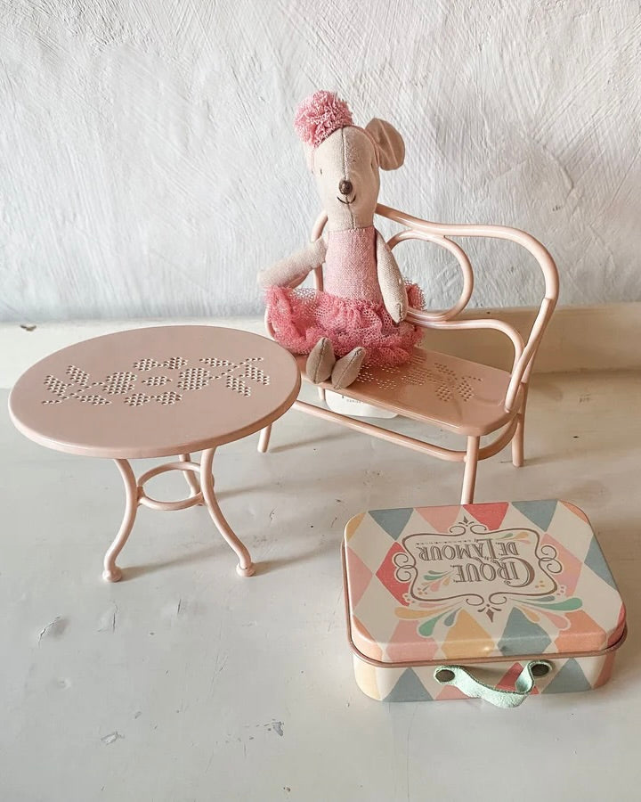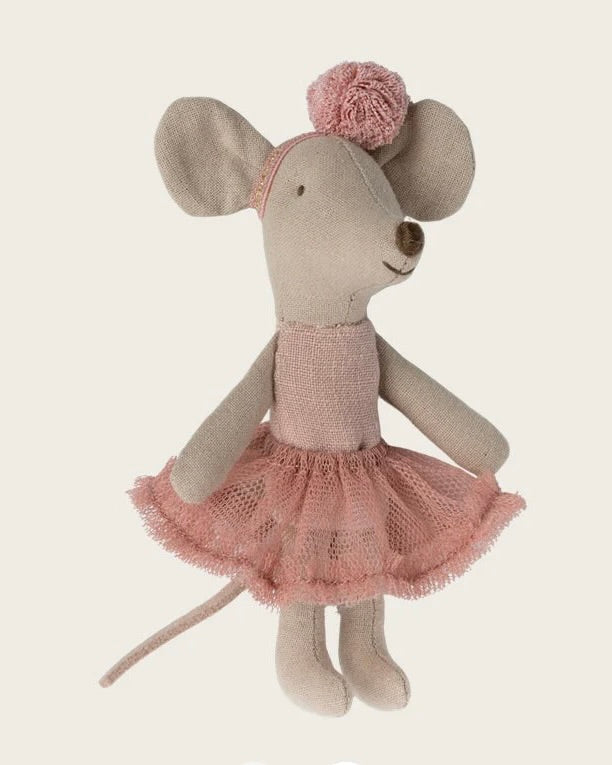 A little sister mouse dressed as a graceful ballerina. She wears a beautiful pink tutu and a lovely headband – ready for hours of dancing.