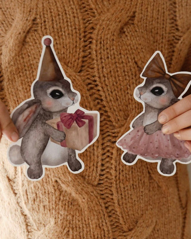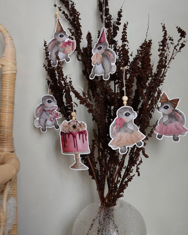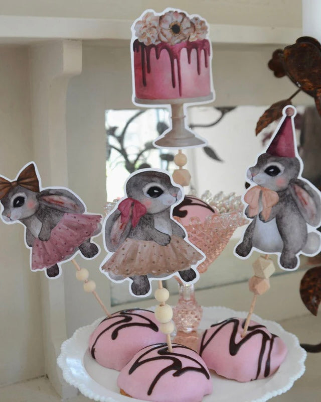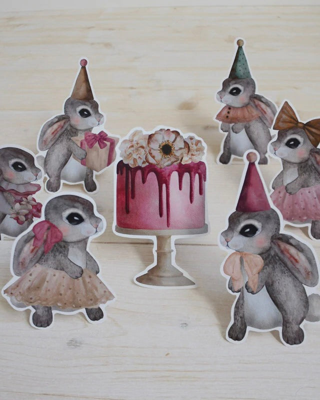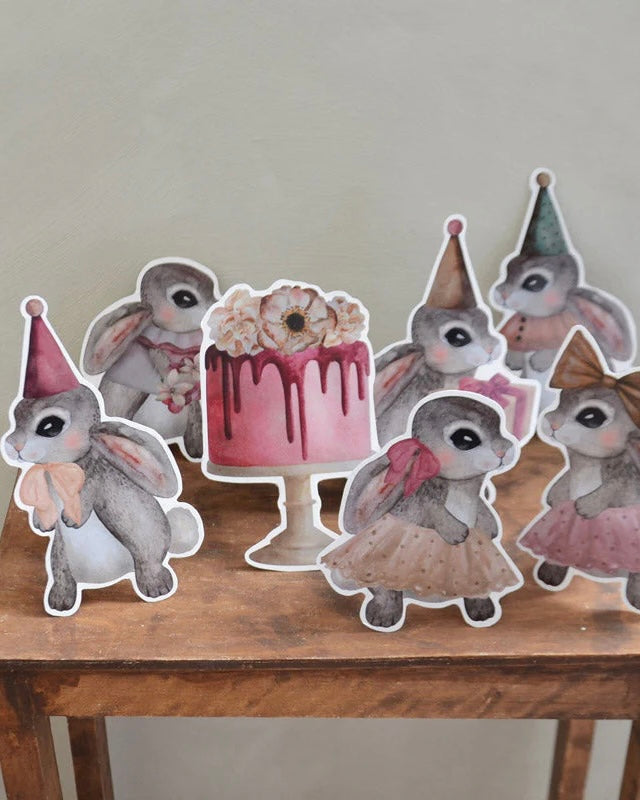 These party bunnies come as a DIY kit, printed on cardstock paper; ready to be cut out and used according to your imagination!