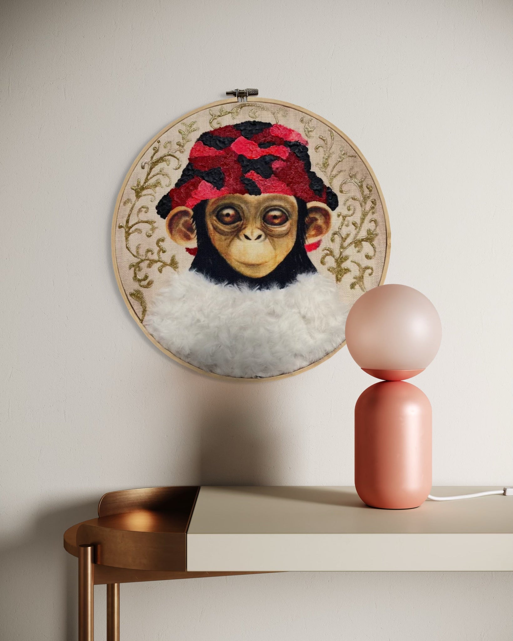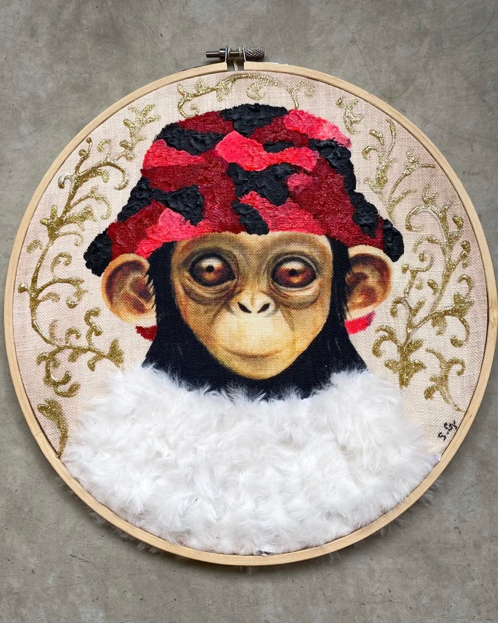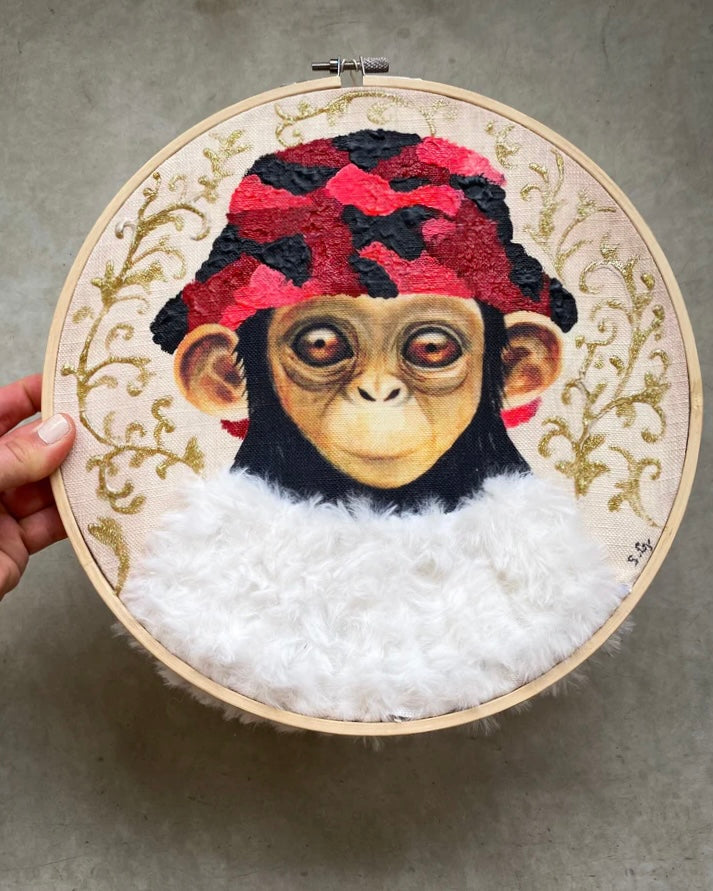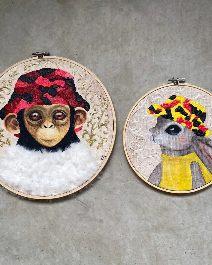 Unique artwork with hand-painted details on printed linen blend canvas fabric,