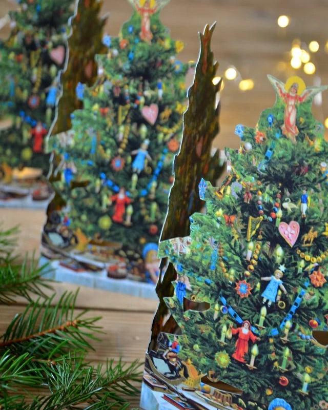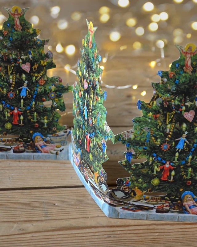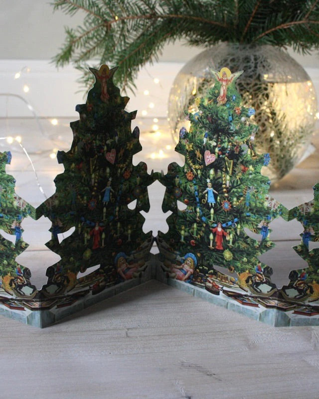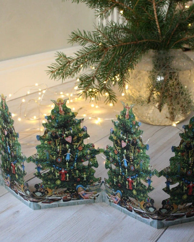 Beautiful foldable paper strip of Christmas trees in vintage style.