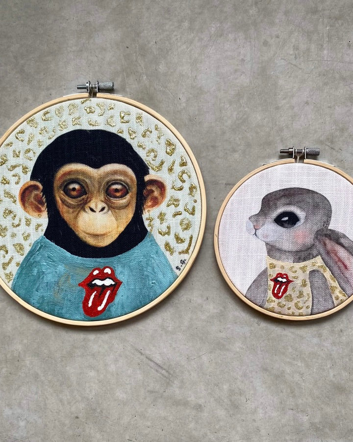 Unikt konstverk med handmålade detaljer på tryckt linneblandat canvas-tyg,