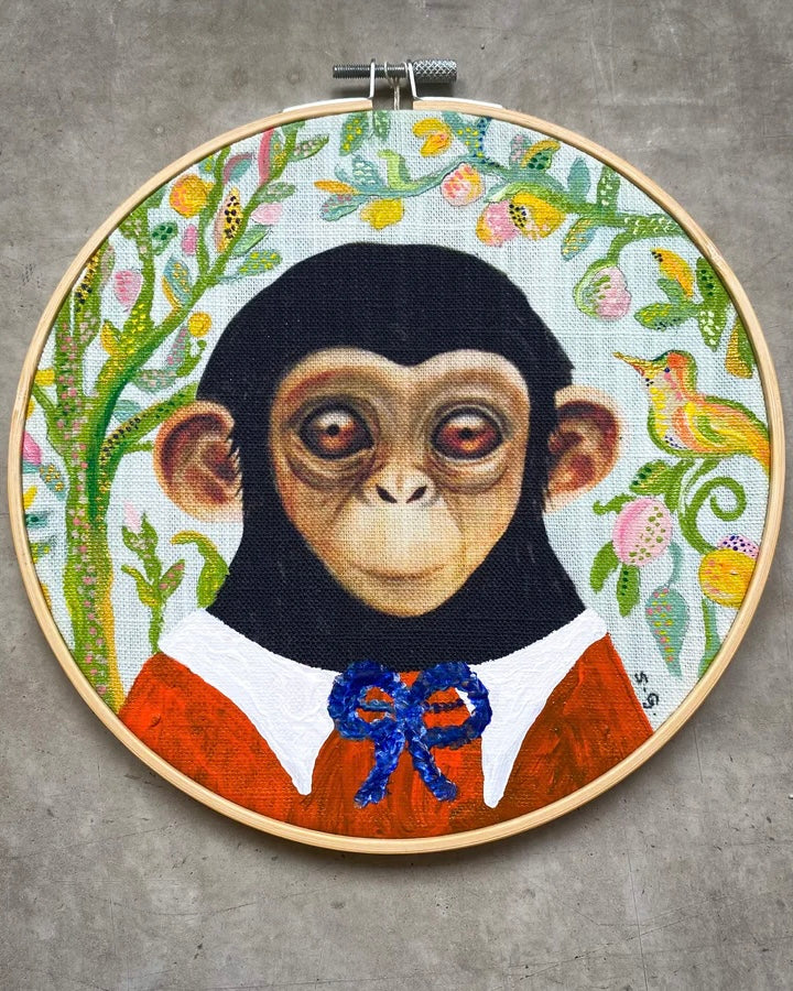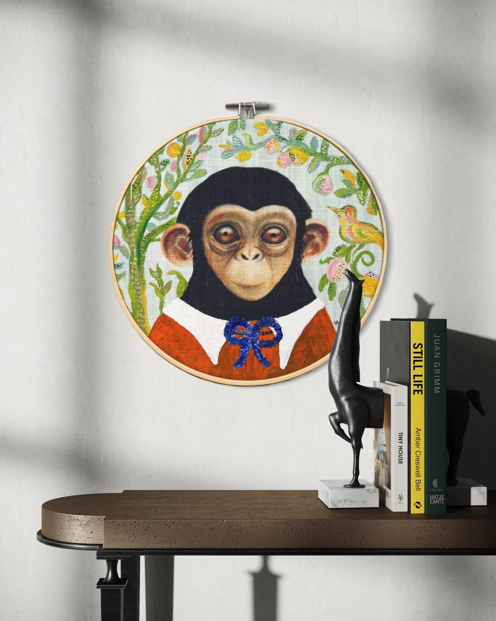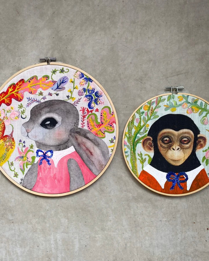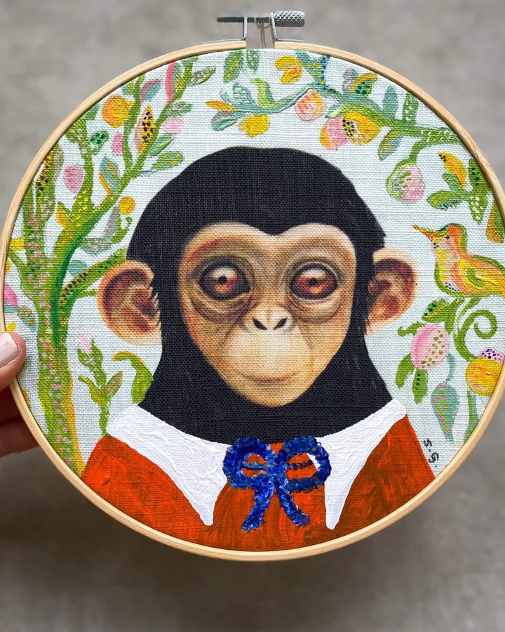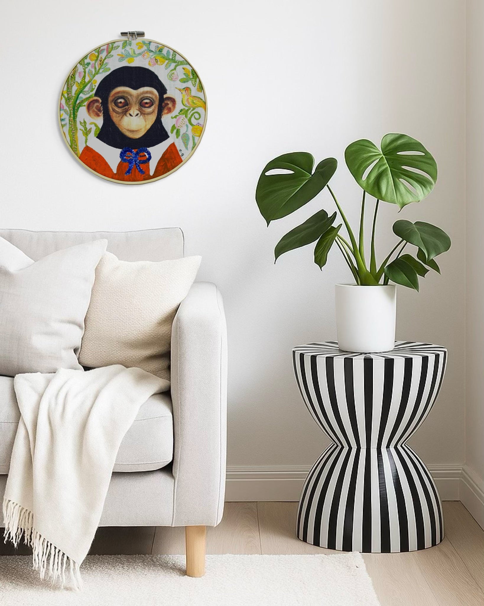 Unikt konstverk med handmålade detaljer på tryckt linneblandat canvas-tyg,